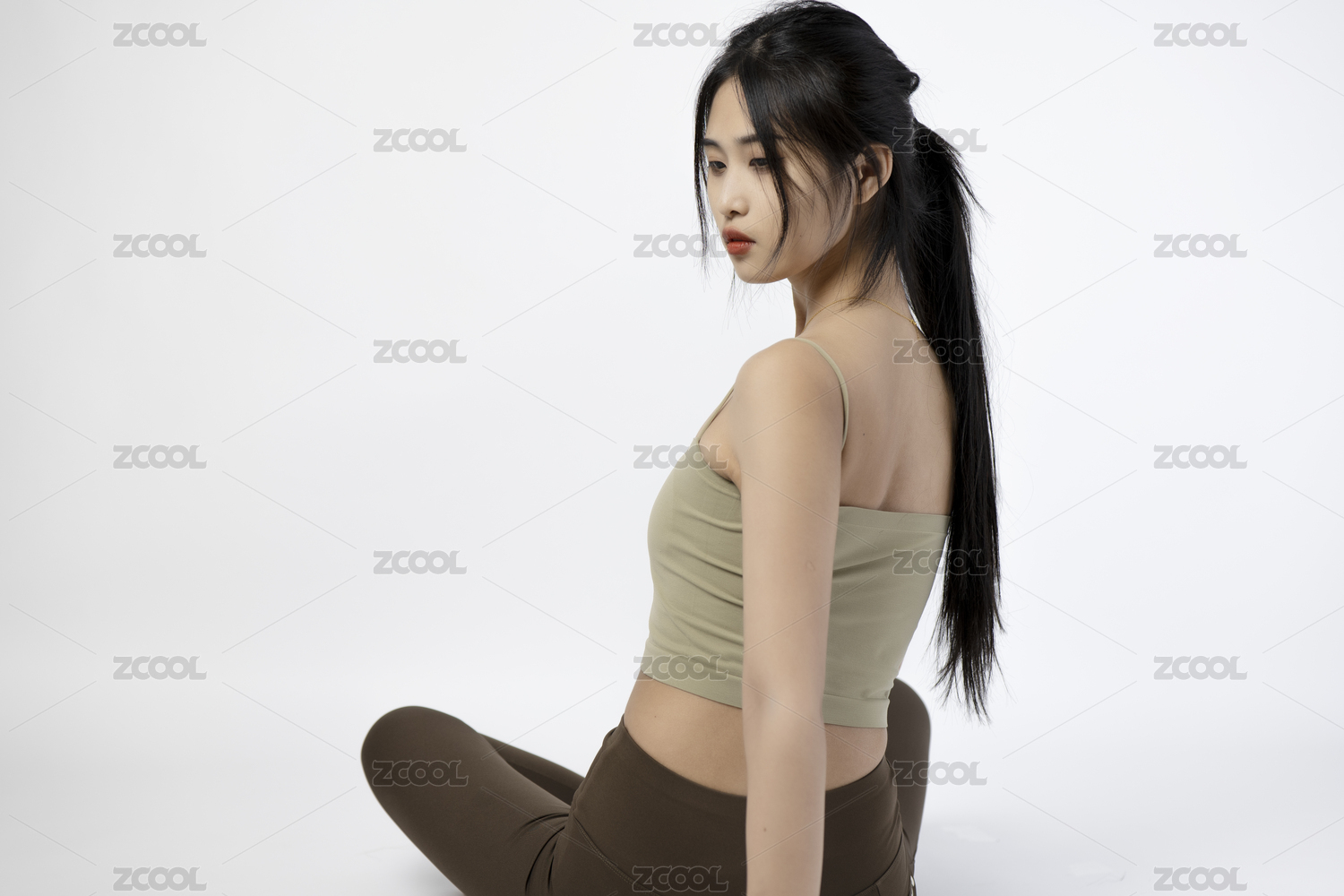 坐著練瑜伽的東方女子