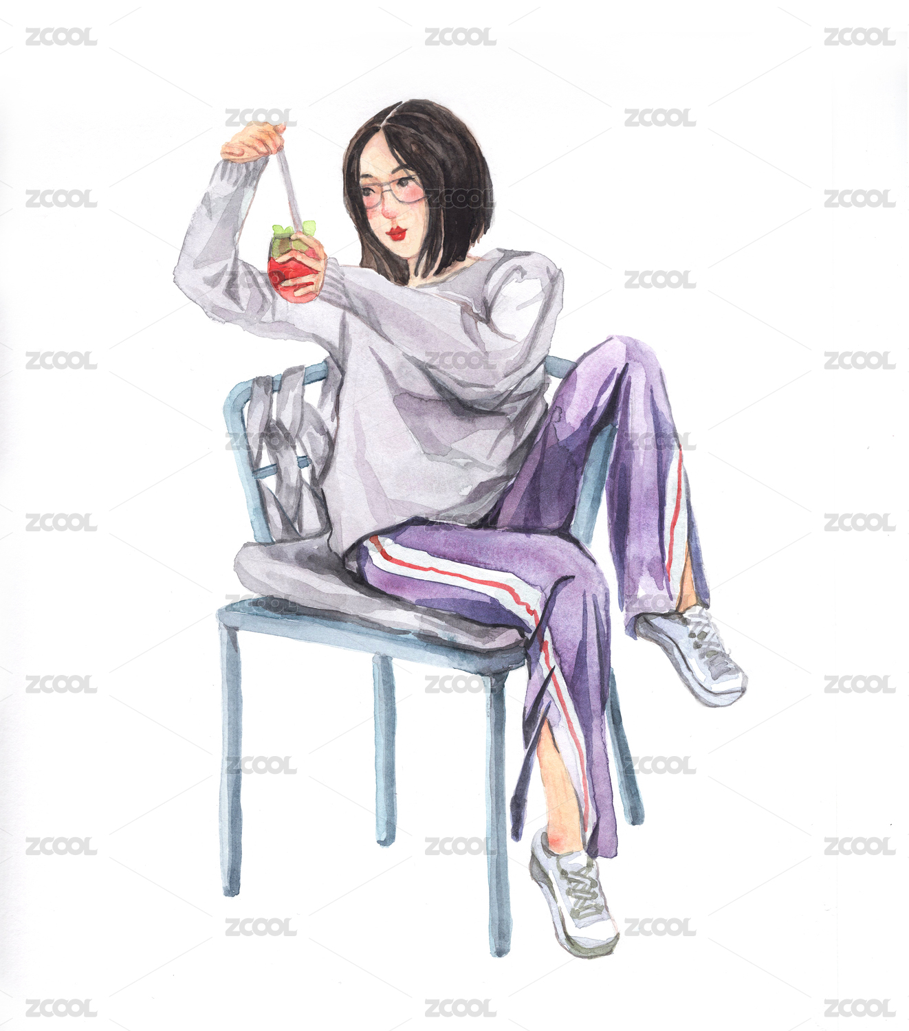 坐在椅子上喝酒的女孩