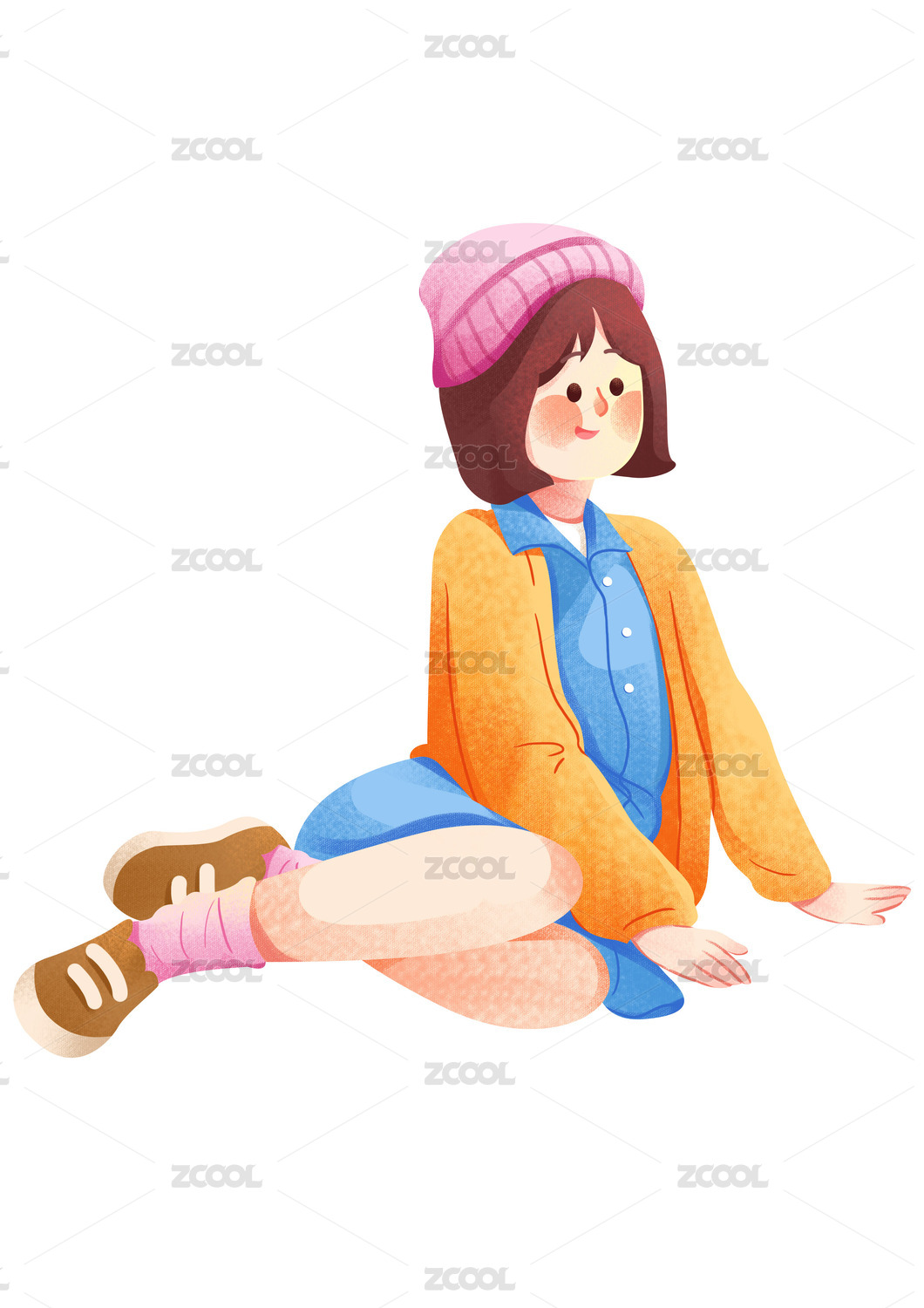 卡通風(fēng)格坐著的男孩插畫(huà)