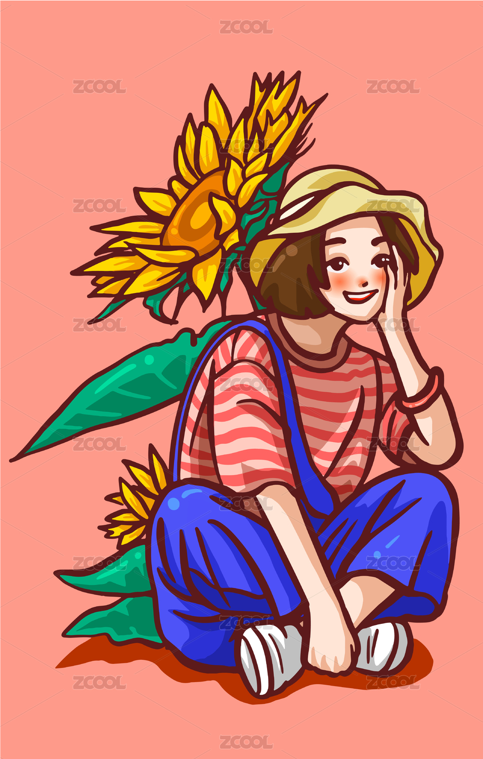 坐著的女孩與向日葵.
