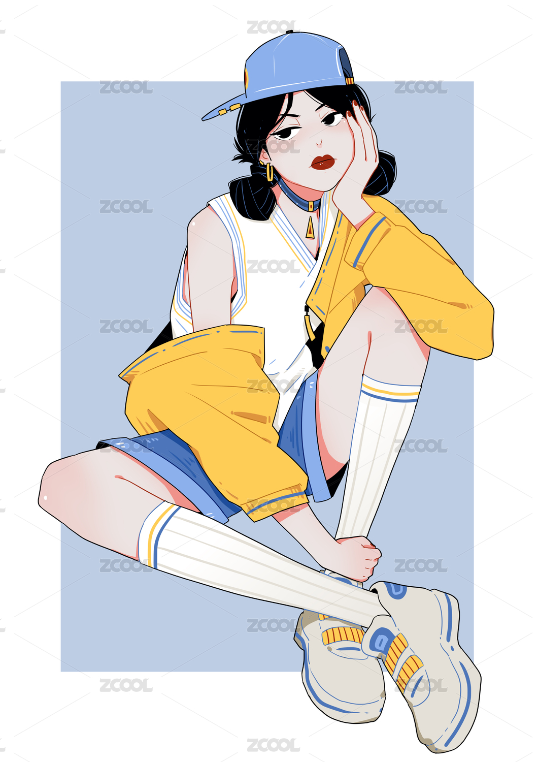 托著腮戴著棒球帽坐著的潮流運(yùn)動(dòng)女生
