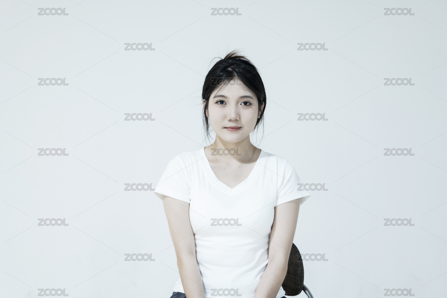 東方商務(wù)女性端莊坐著正面視角