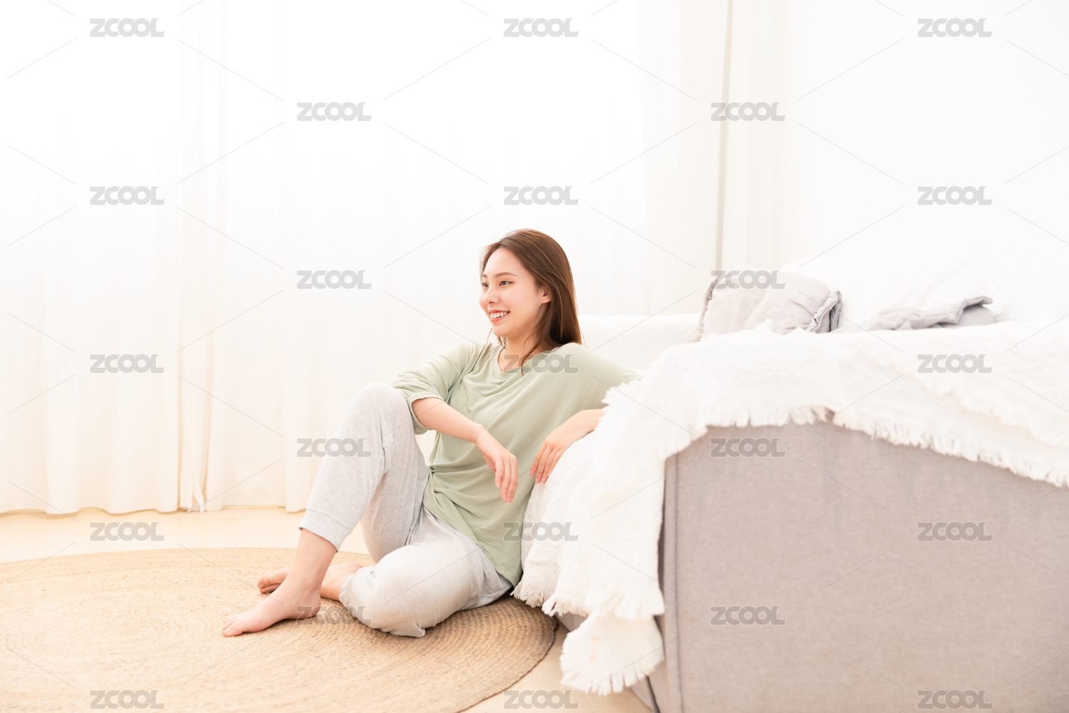 青年女性一個(gè)人在家看電視