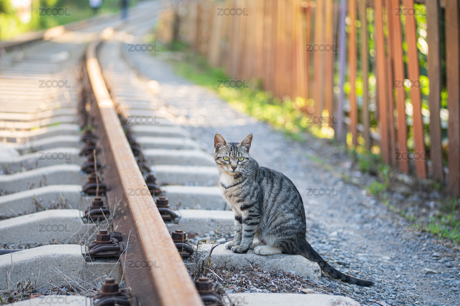 鐵道邊坐著的一只貍花貓