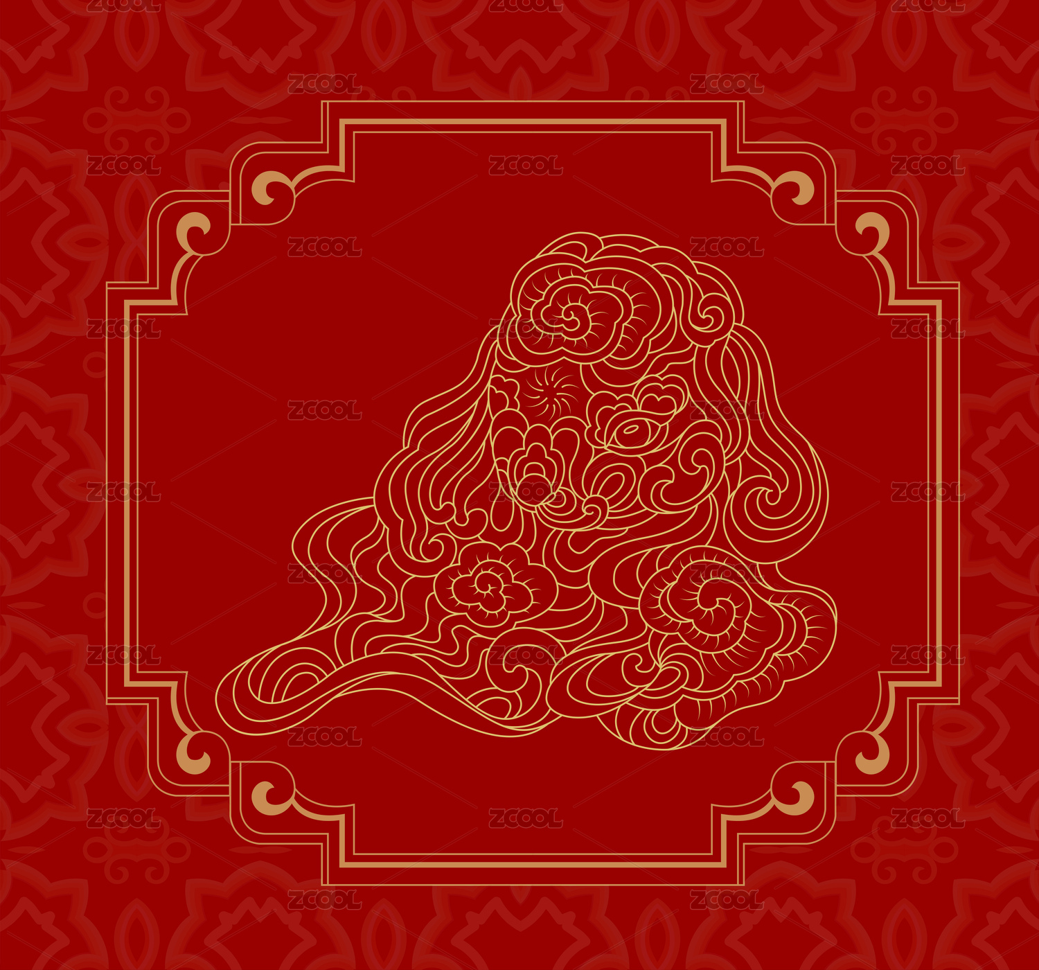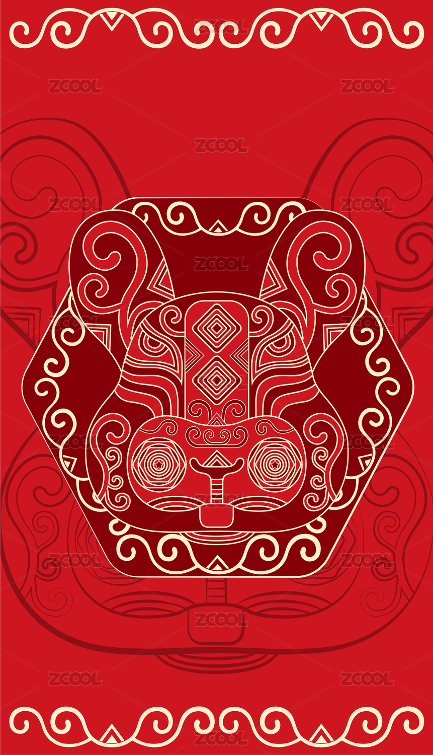 十二生肖兔中國紅傳統(tǒng)紋樣矢量插畫紅包海報
