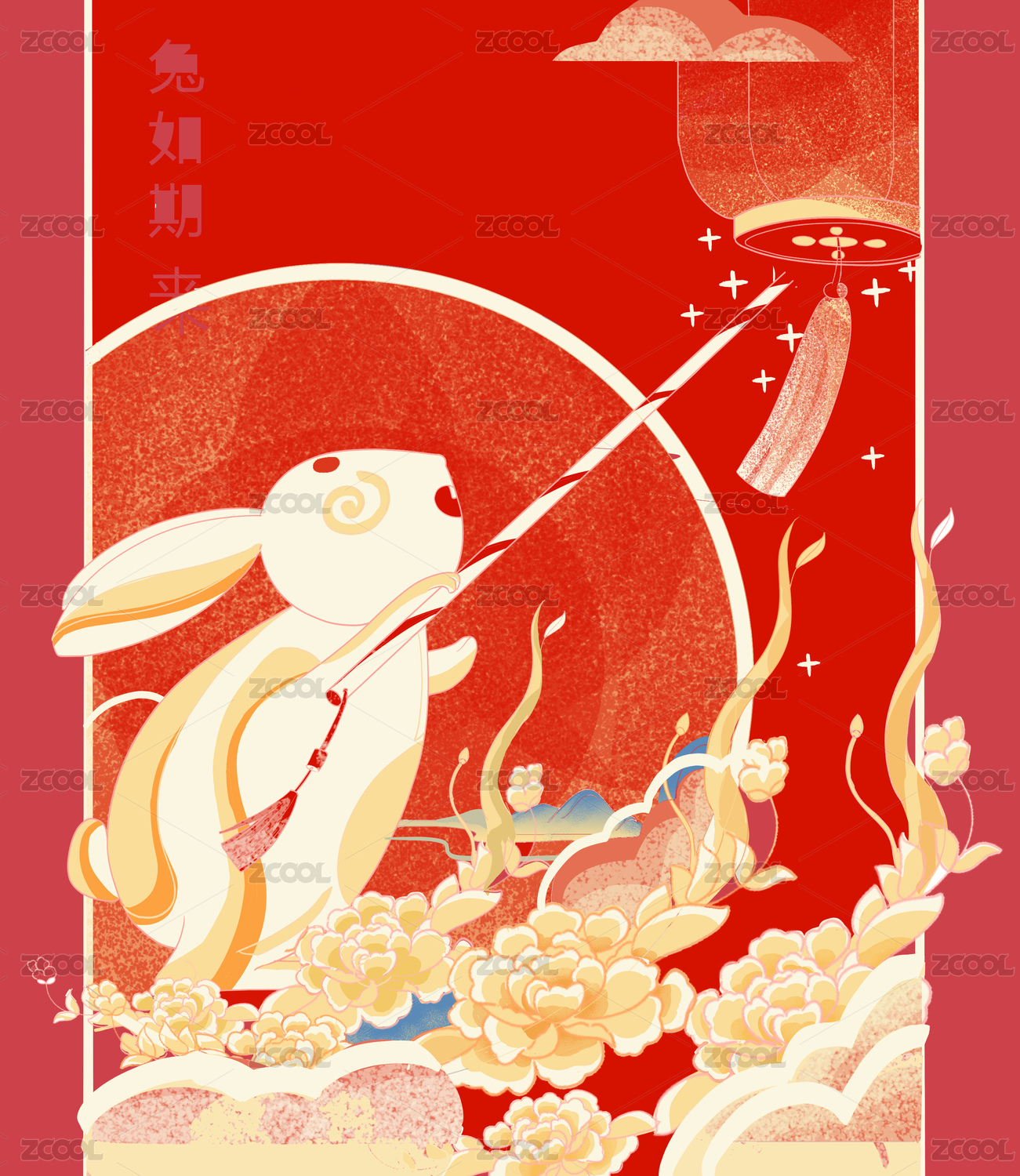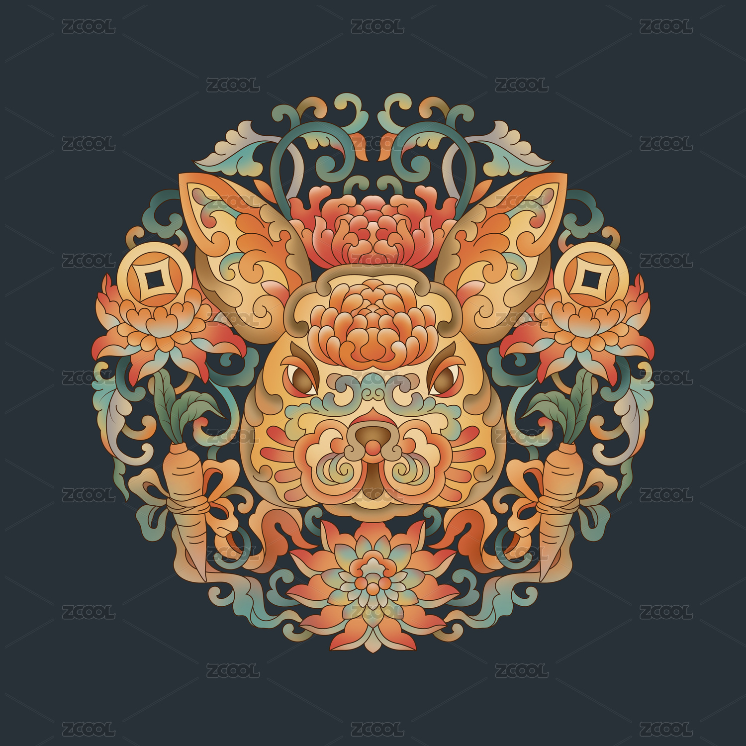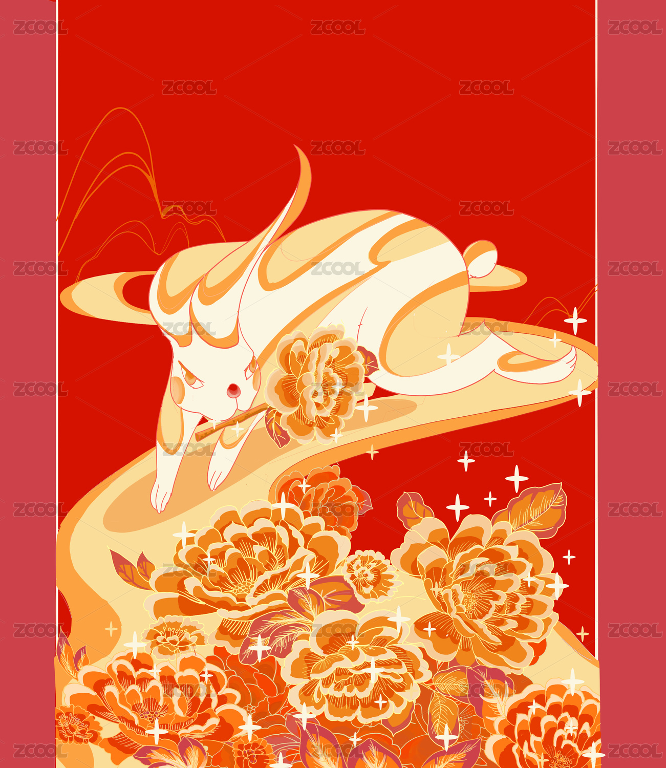 十二生肖兔傳統(tǒng)中國風(fēng)國潮紋樣兔年插畫