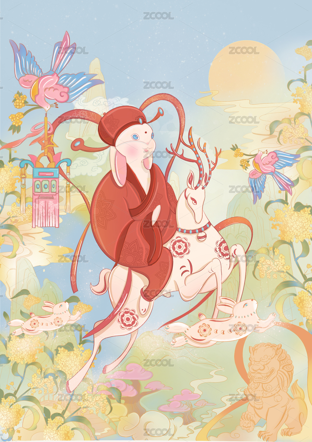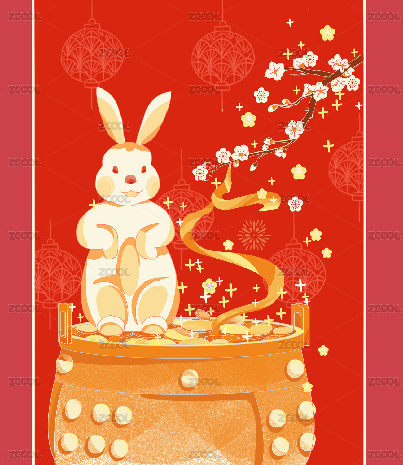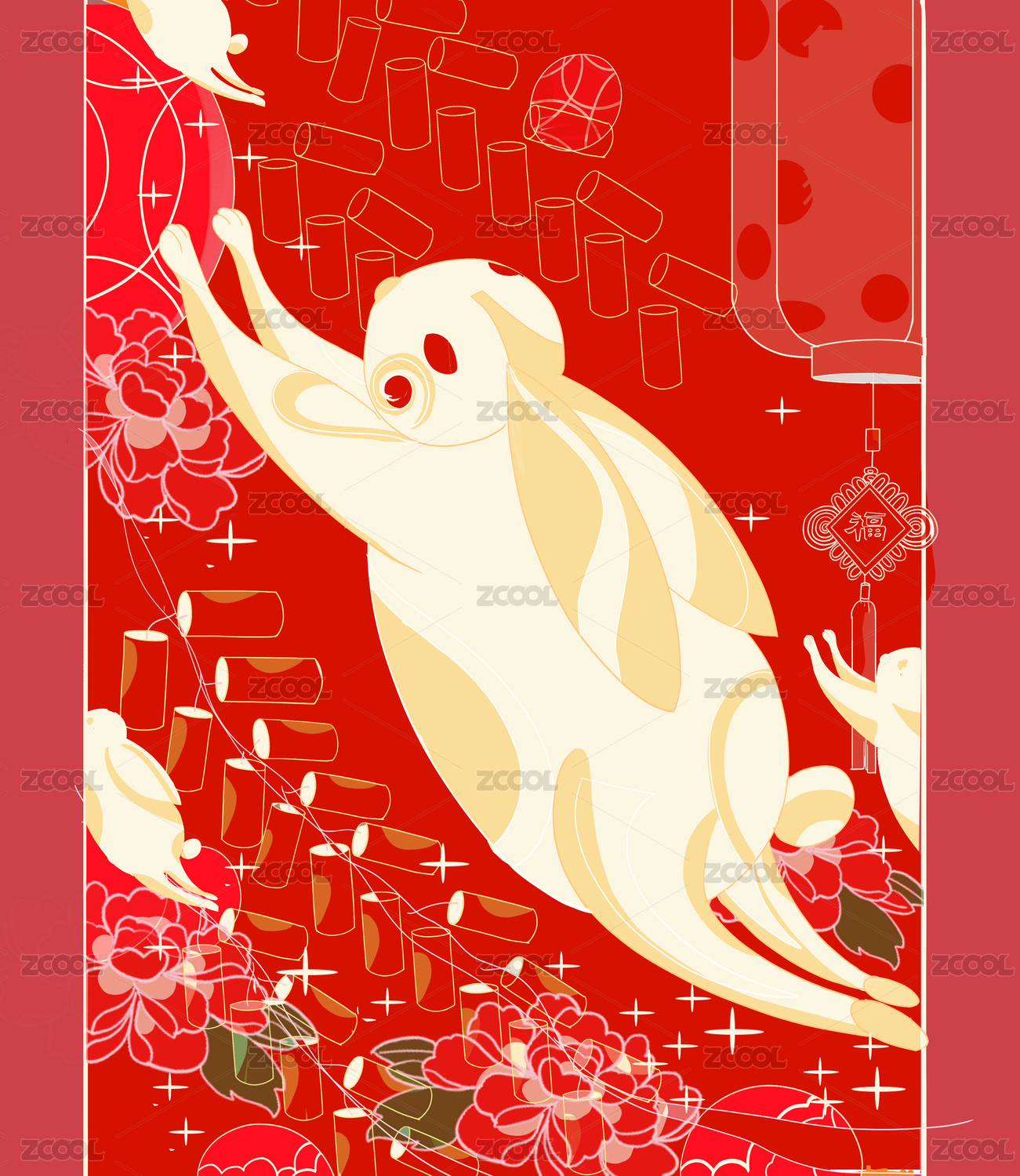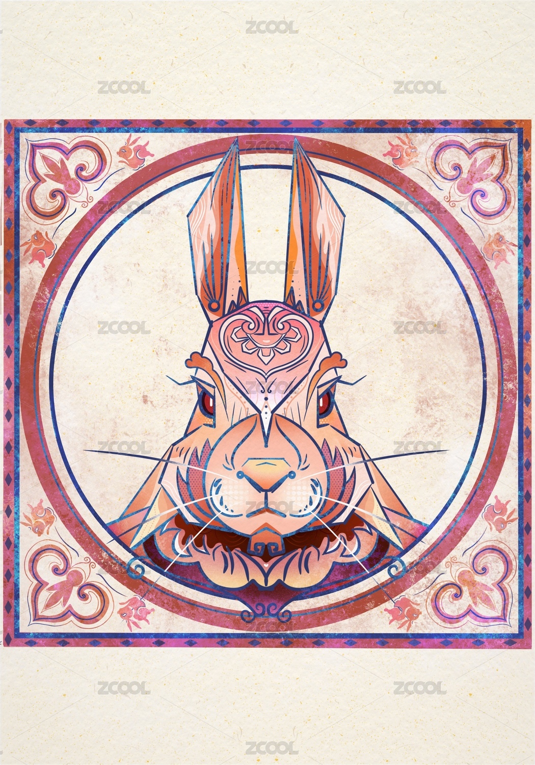 十二生肖兔傳統(tǒng)中國風(fēng)國潮紋樣兔年插畫