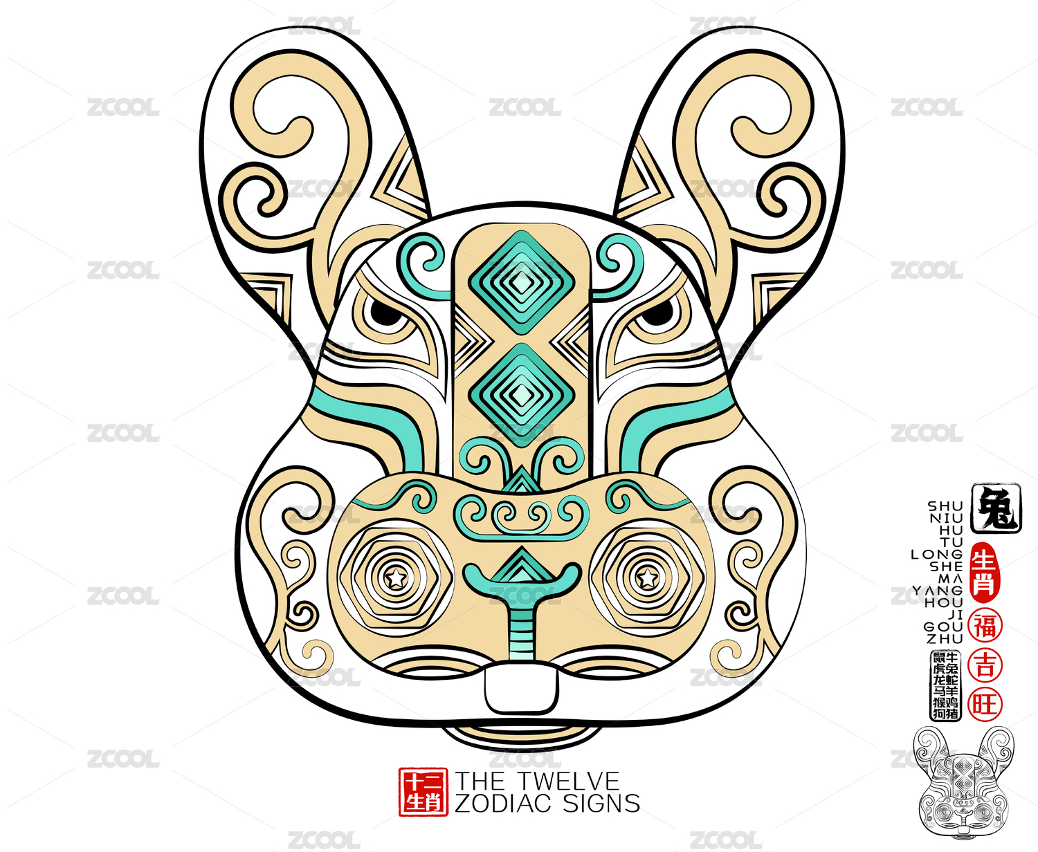 簡約中國風(fēng)十二生肖兔潮流印花紋樣矢量插畫