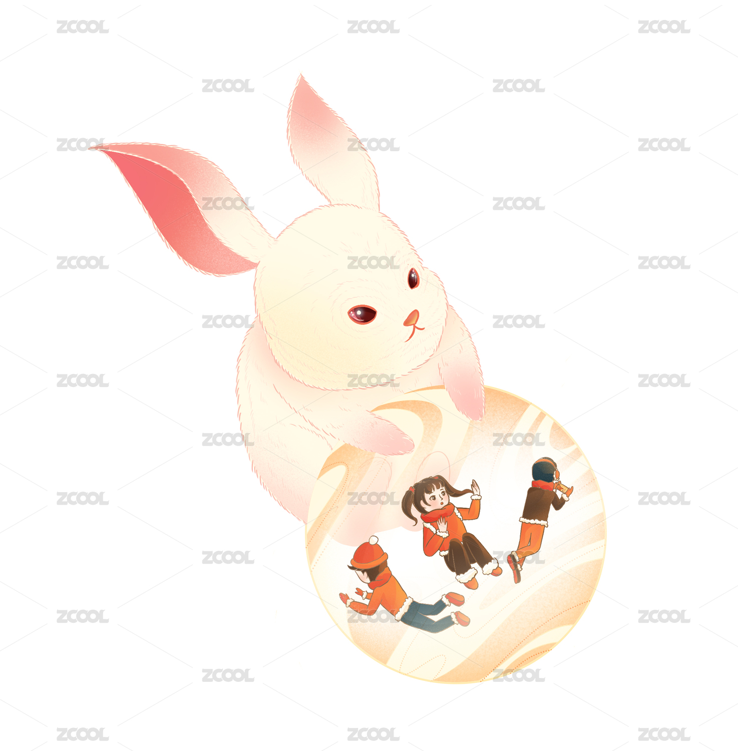 卡通風(fēng)手繪中秋可愛生肖兔元素