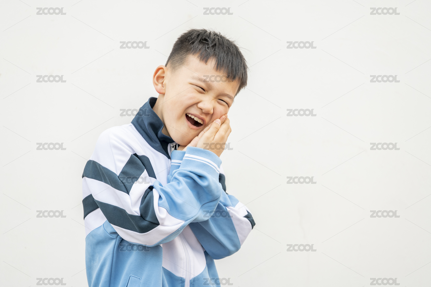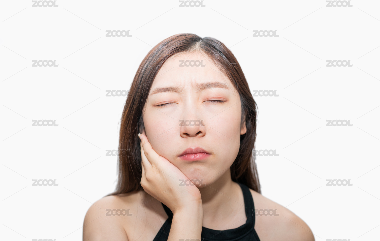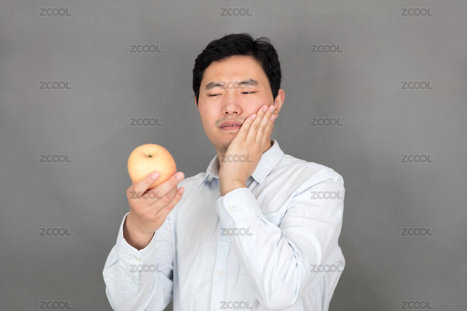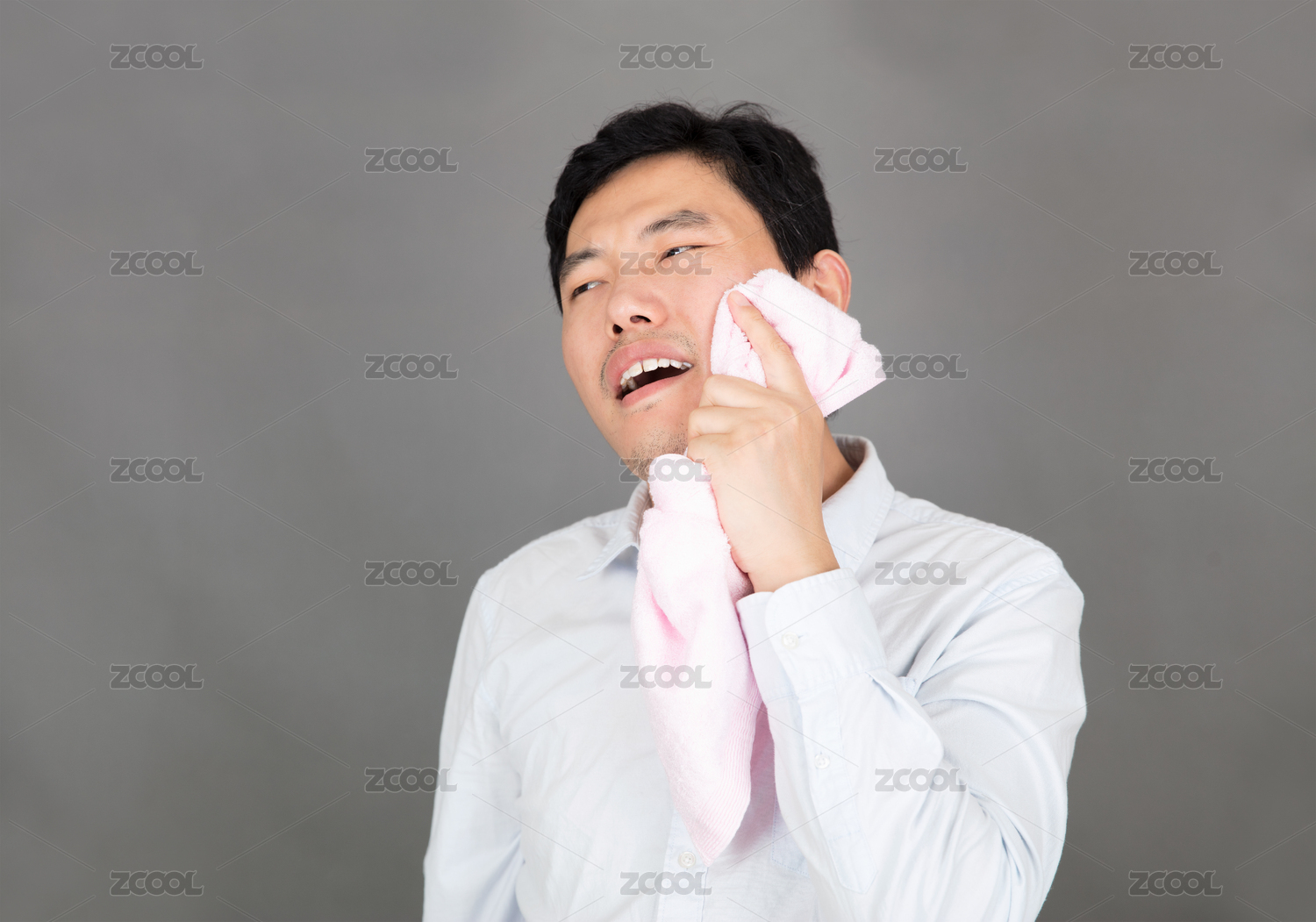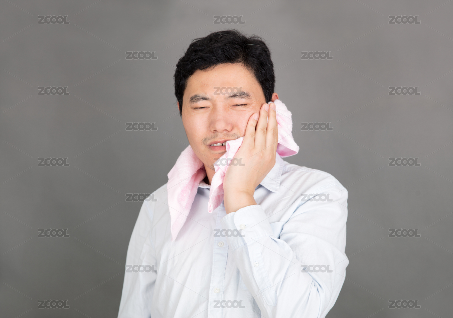 一個亞洲中國人摸著自己神經(jīng)疼痛酸痛的牙周炎的牙齒