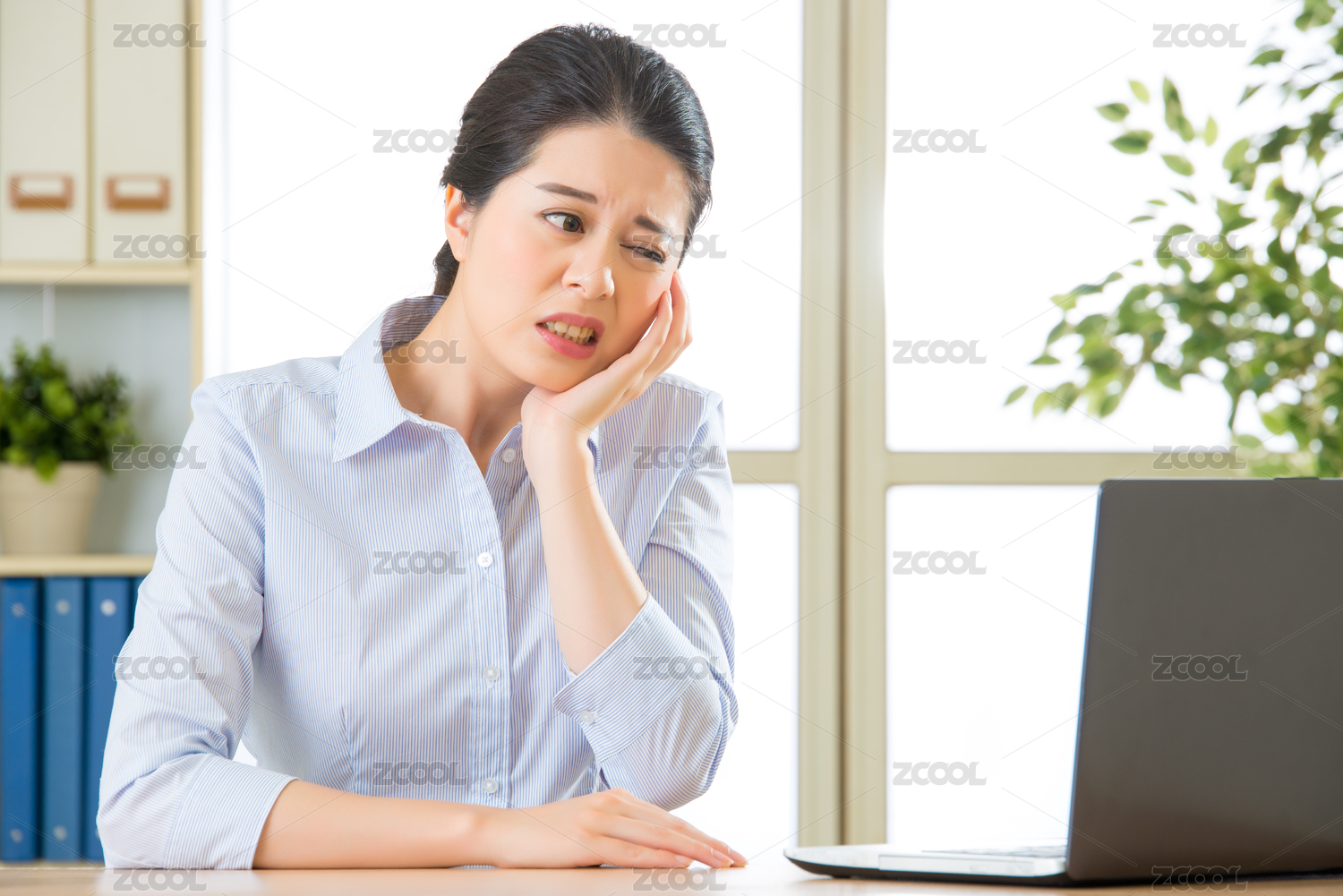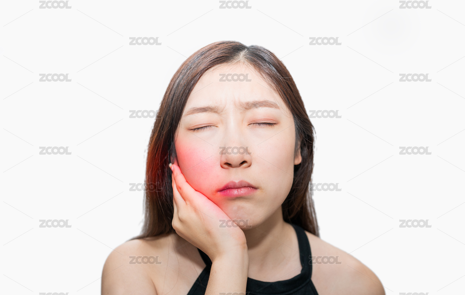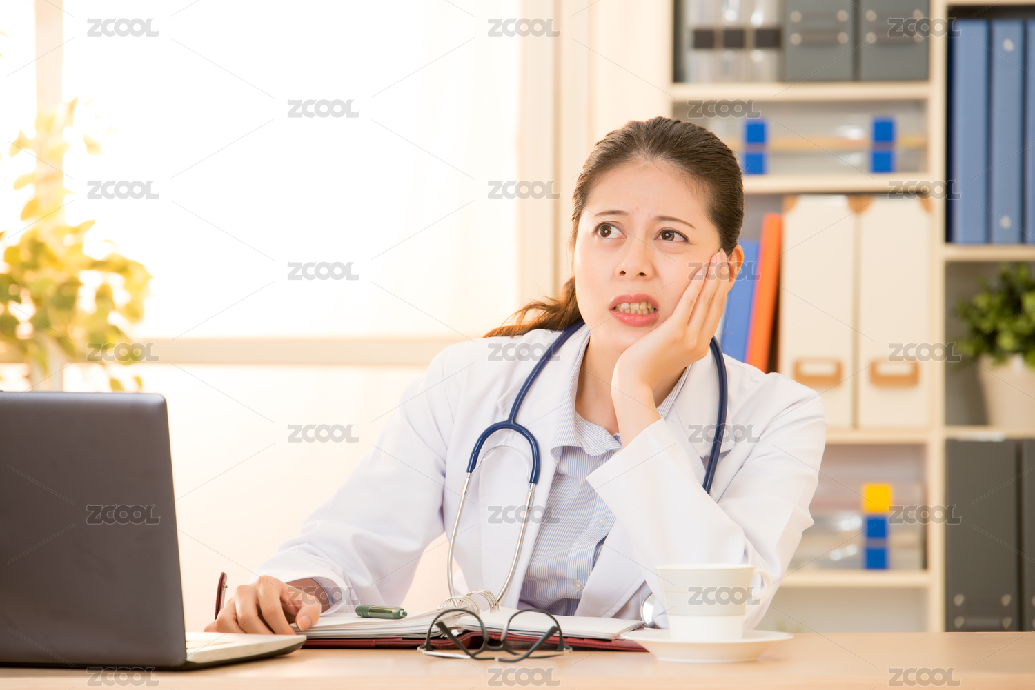 年輕漂亮的女醫(yī)生在醫(yī)院門診中,從牙痛的痛苦?;煅獊喼薜闹袊J健at(yī)療保健概念。