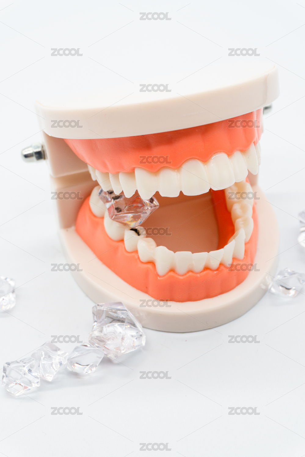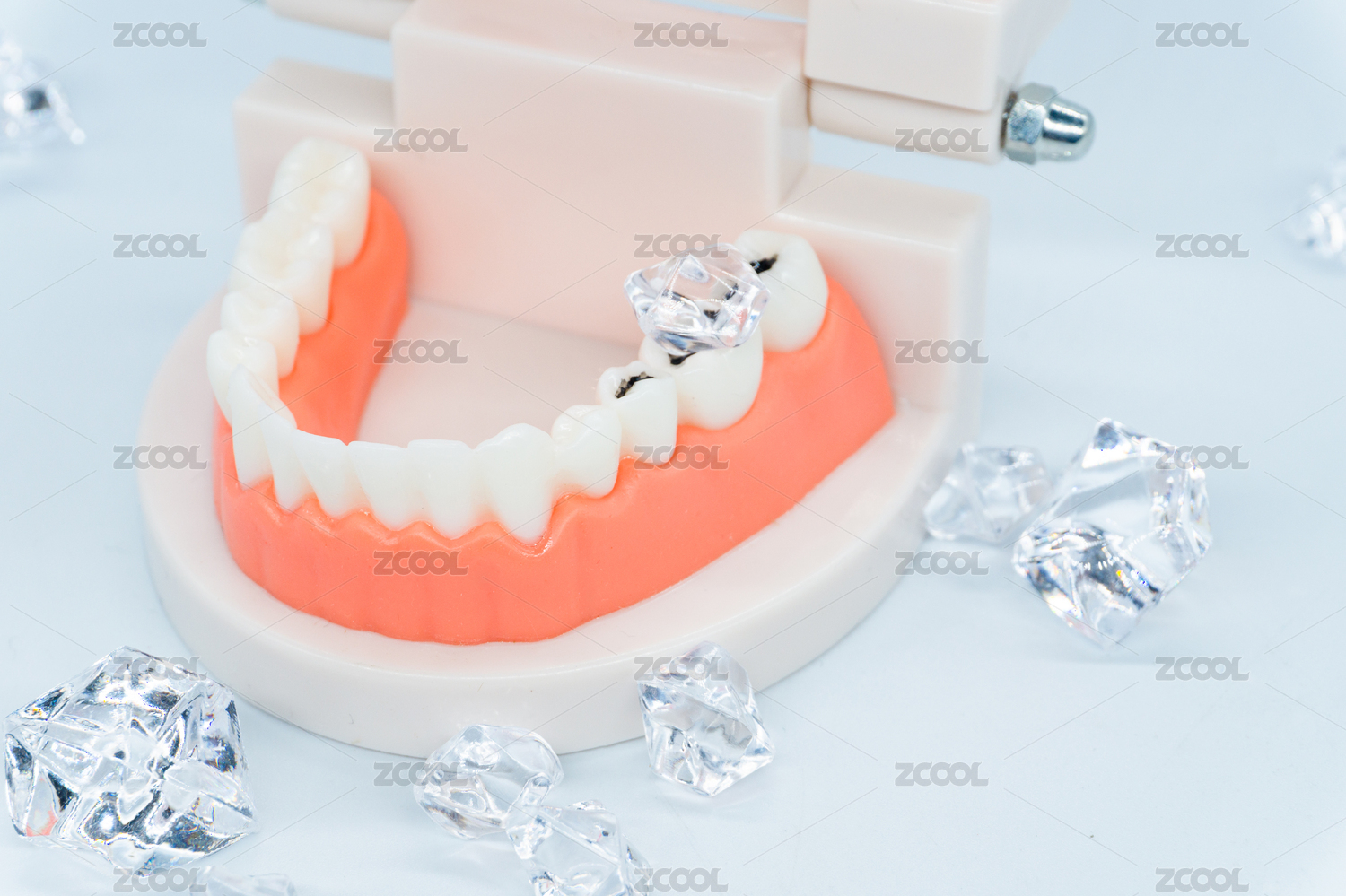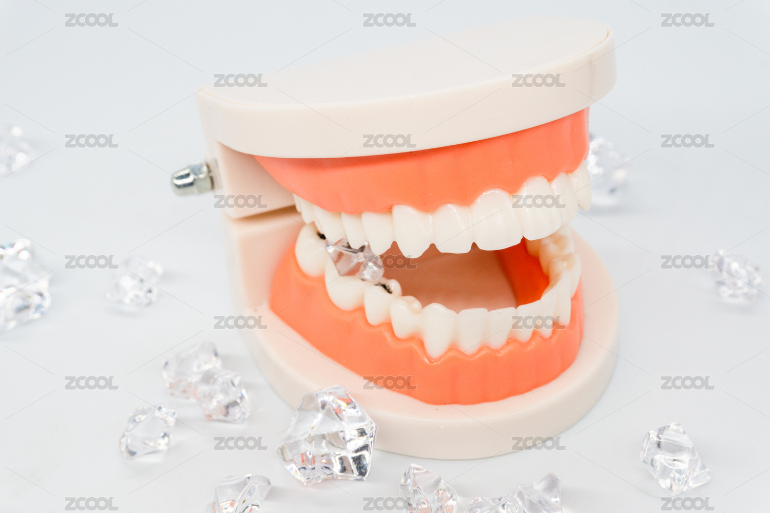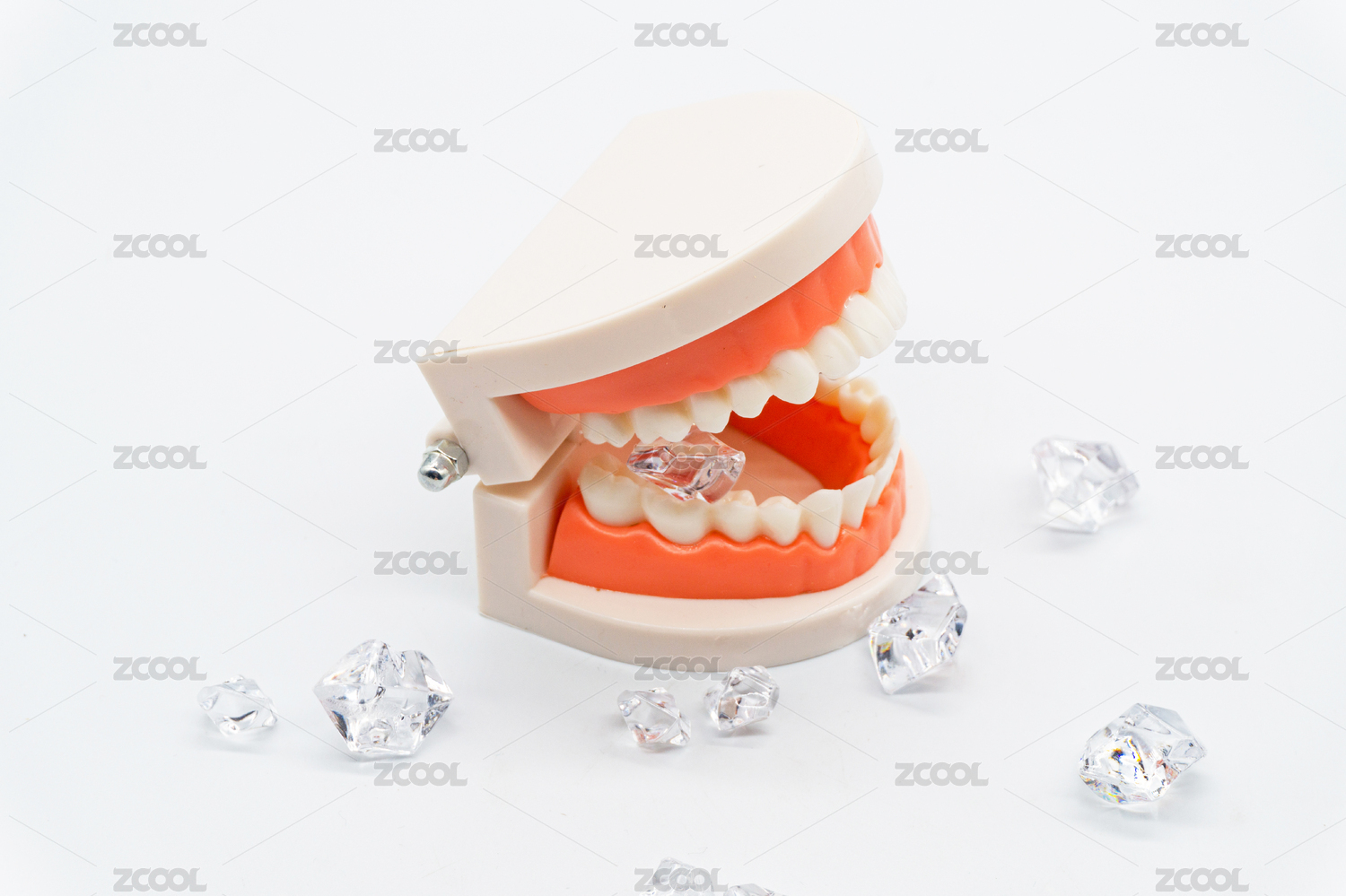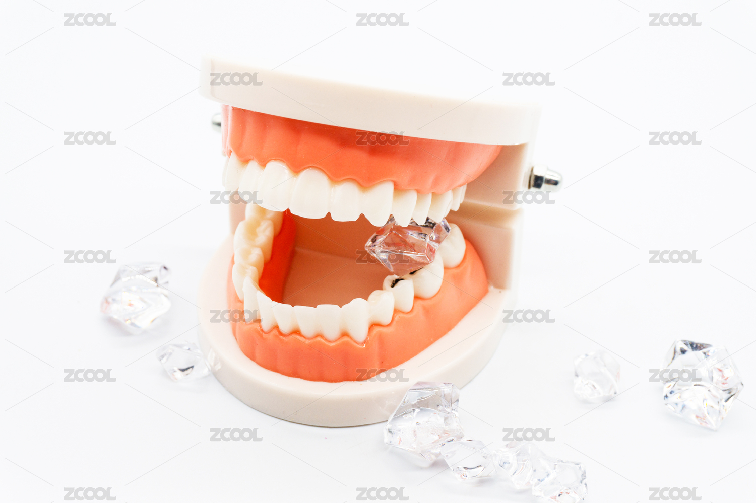 白色背景愛牙日牙齒冷凍食品敏感概念