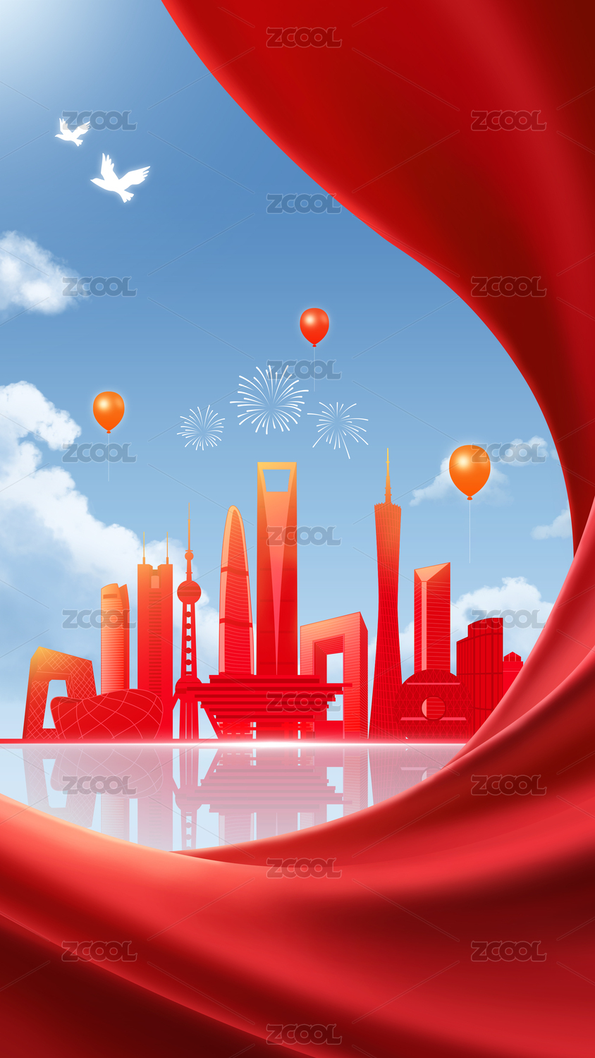 國(guó)慶節(jié)紅色旗幟地標(biāo)建筑節(jié)日海報(bào)