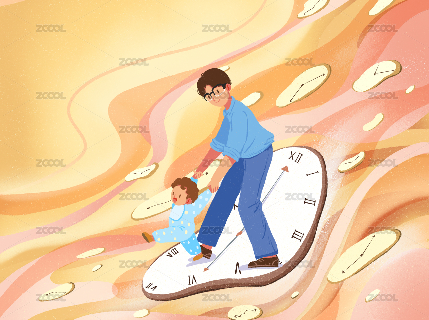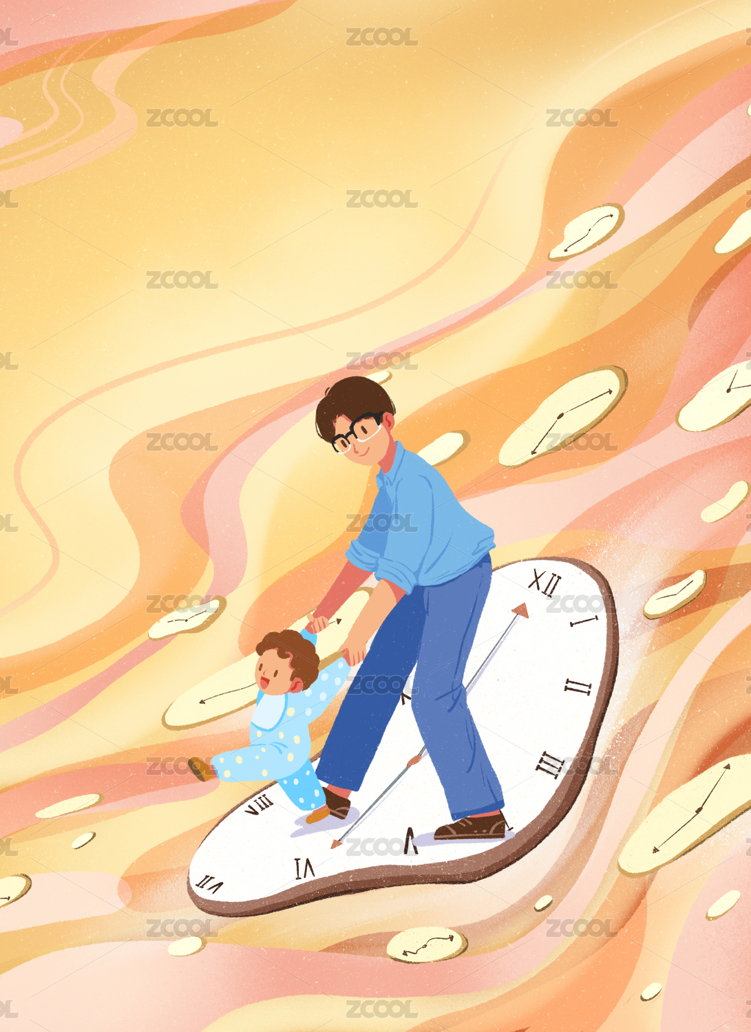 父親節(jié)父子學(xué)走路時光流淌插畫
