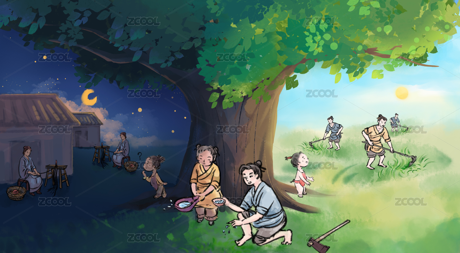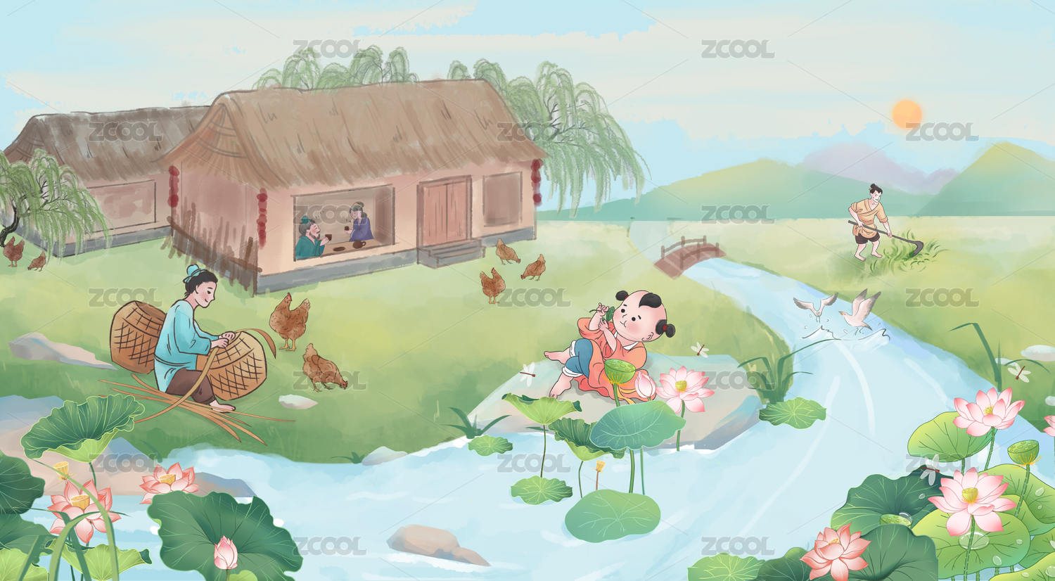 清平樂·村居小學(xué)古詩詞配圖插畫