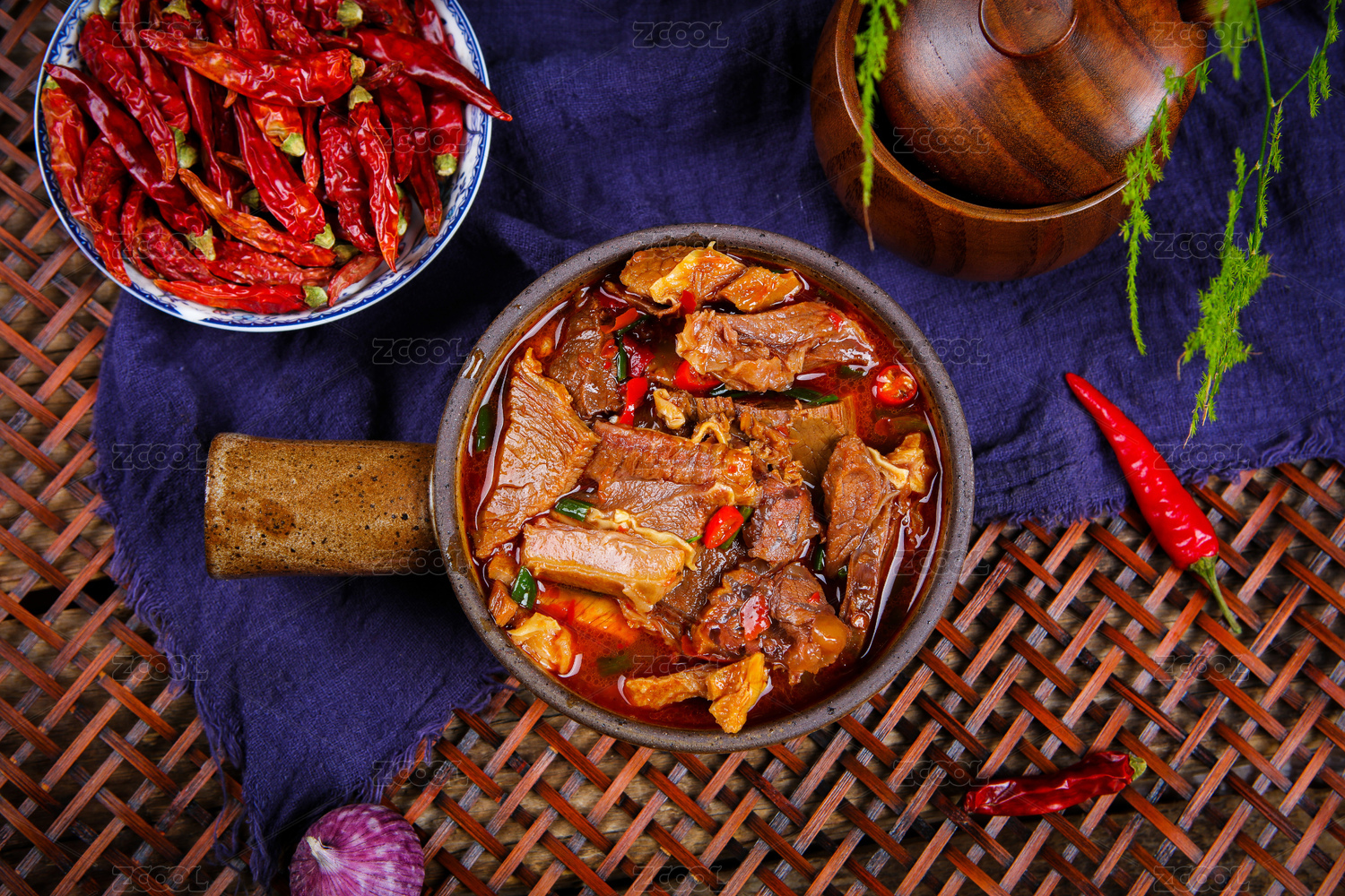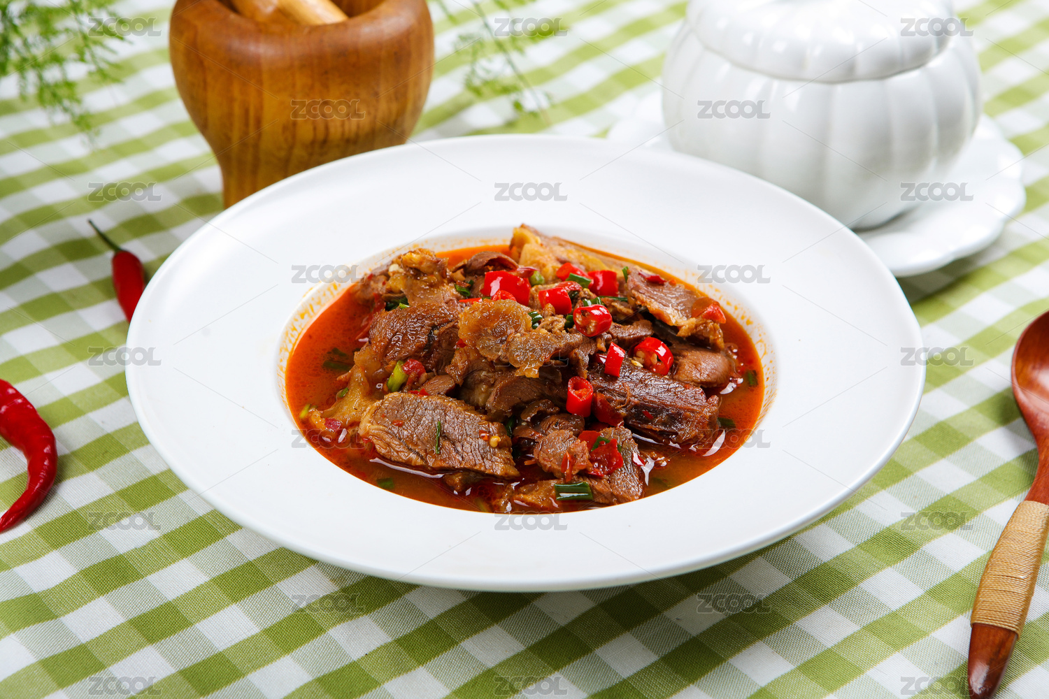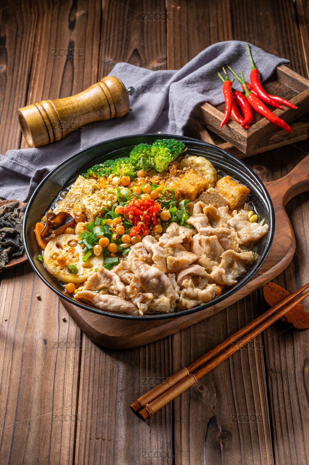 中國特色小吃肉片蔬菜酸辣粉酸辣米線插畫