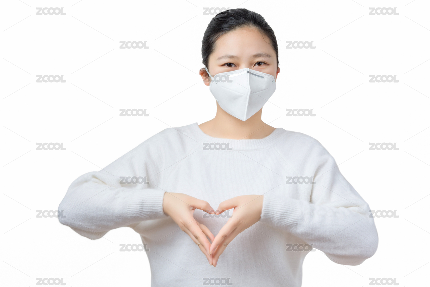 生病戴著口罩的女生,白色背景