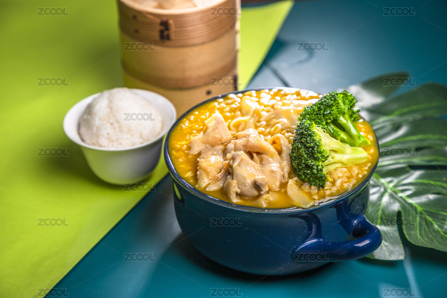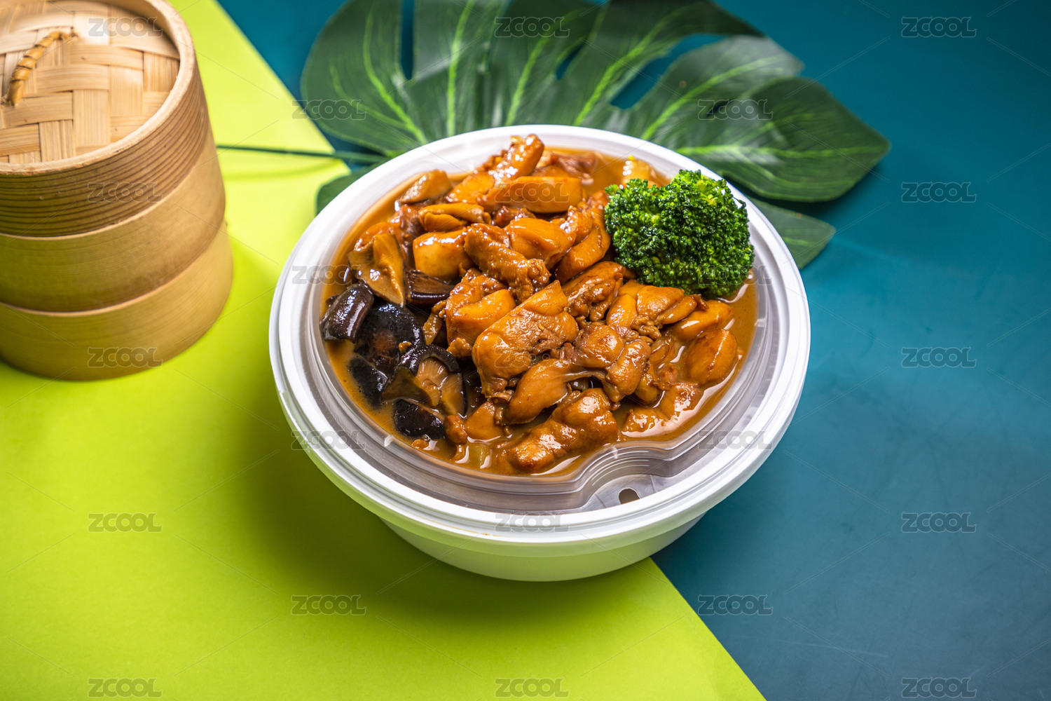 藍綠色卡紙上放著一份鮑汁雞肉撈飯