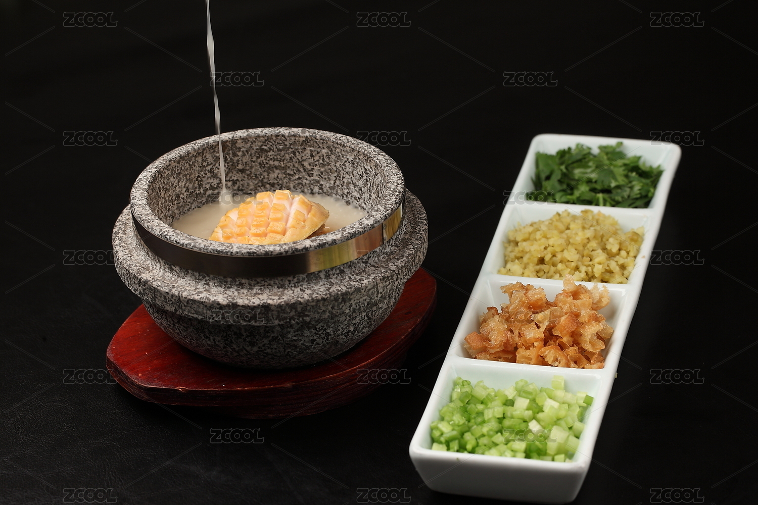 藍綠色卡紙上放著一份鮑魚雞肉撈飯