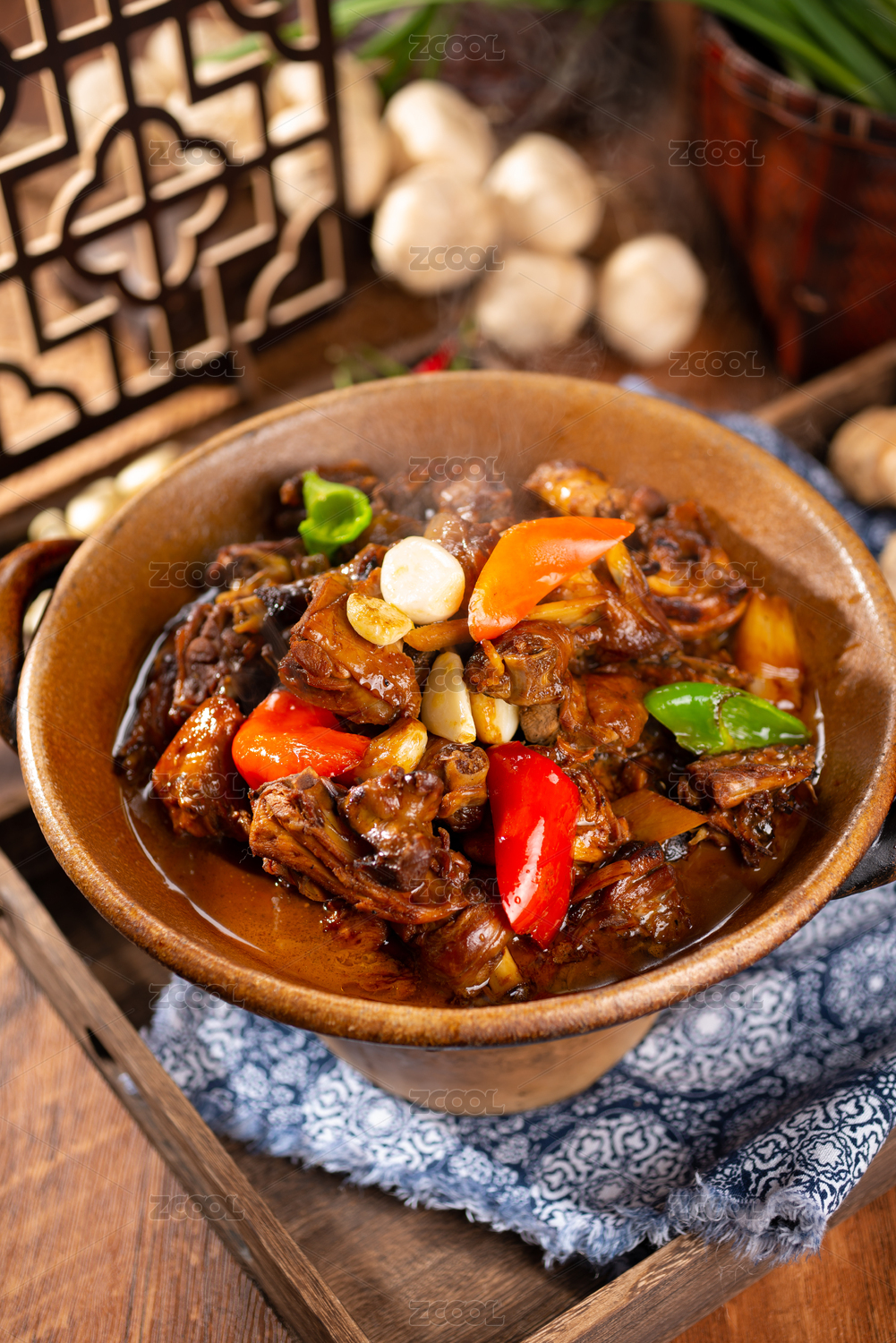 中國上海的一道熱菜——紅燒土雞煲仔飯