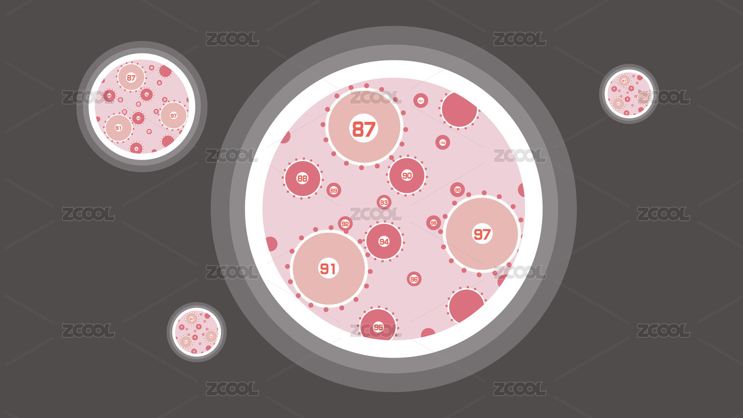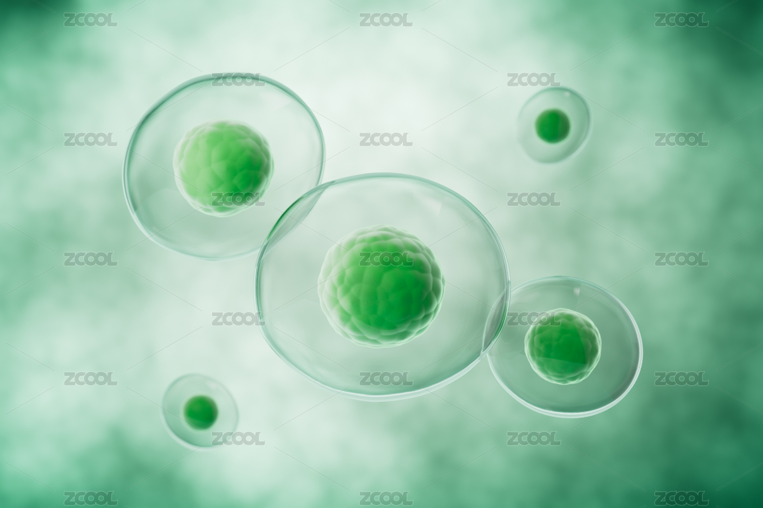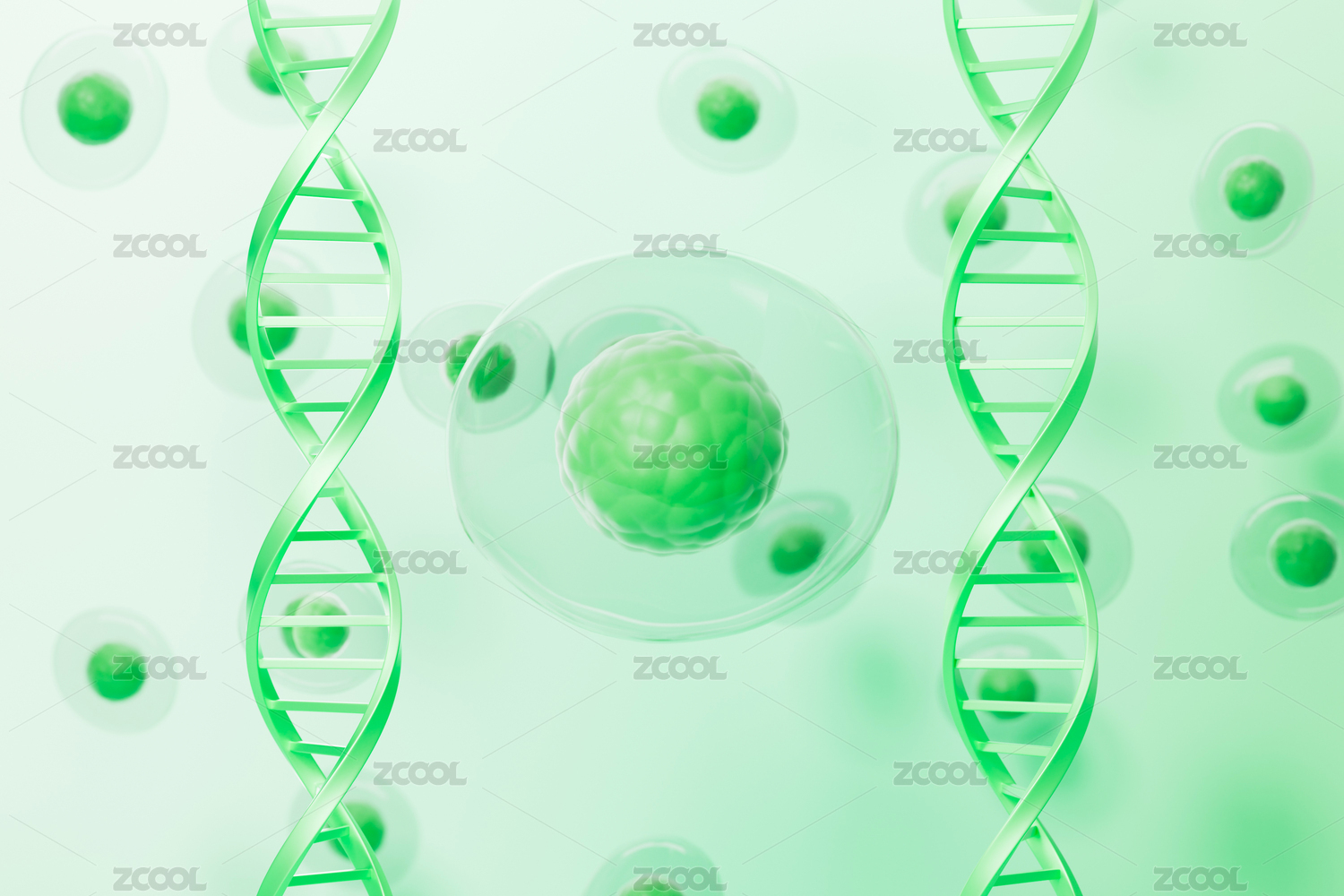 3D渲染的深綠色背景下細(xì)胞與細(xì)胞核