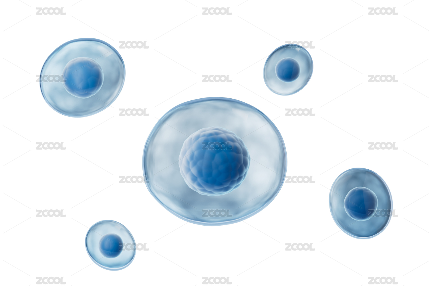 白色背景下的細(xì)胞與細(xì)胞核,3D渲染