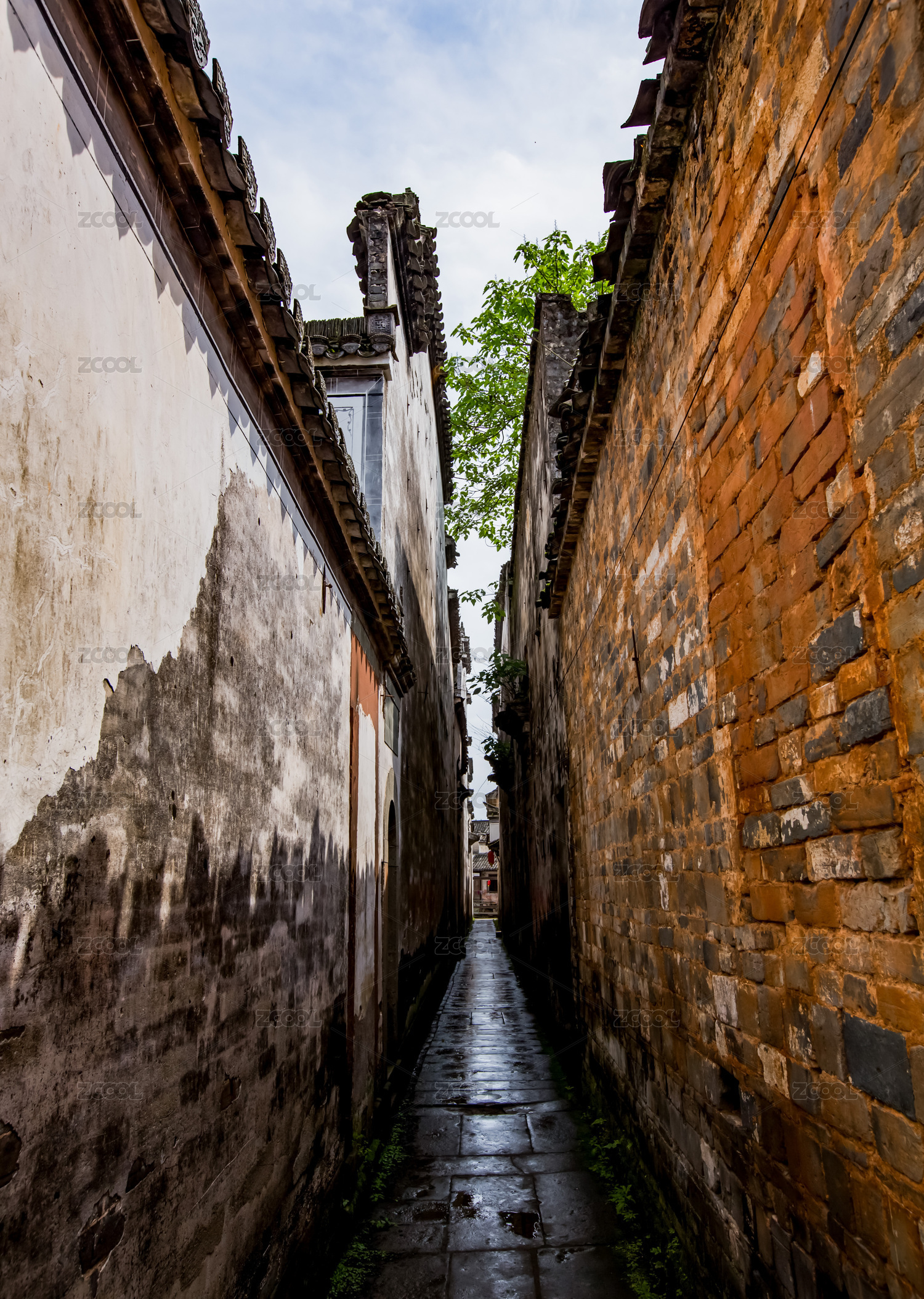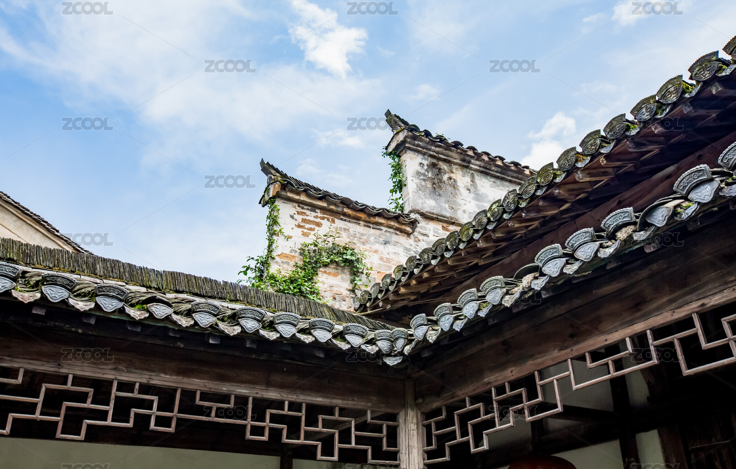 中國安徽黃山唐模古鎮(zhèn)里的大宅庭院風光
