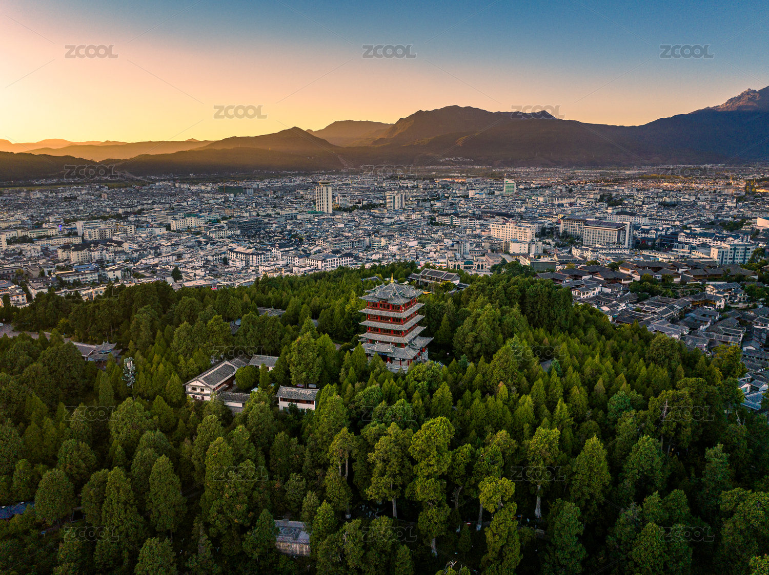 航拍中國麗江獅子山萬古樓
