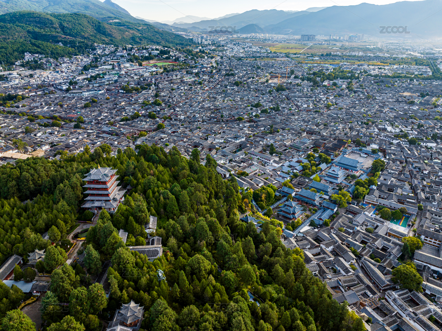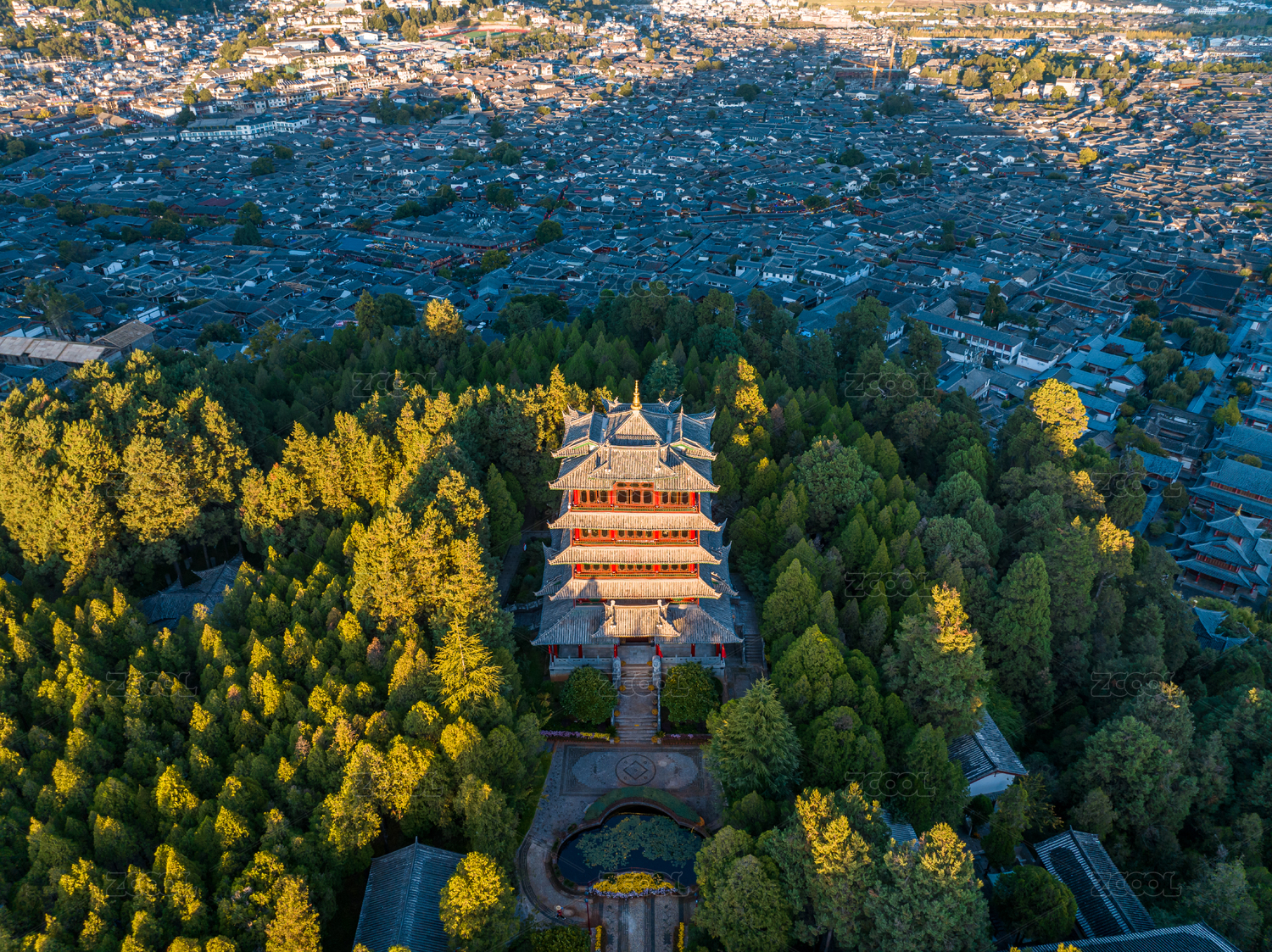 云南麗江古城獅子山萬古樓航拍