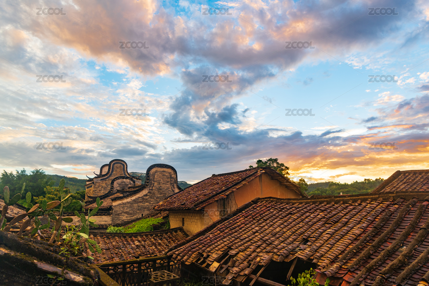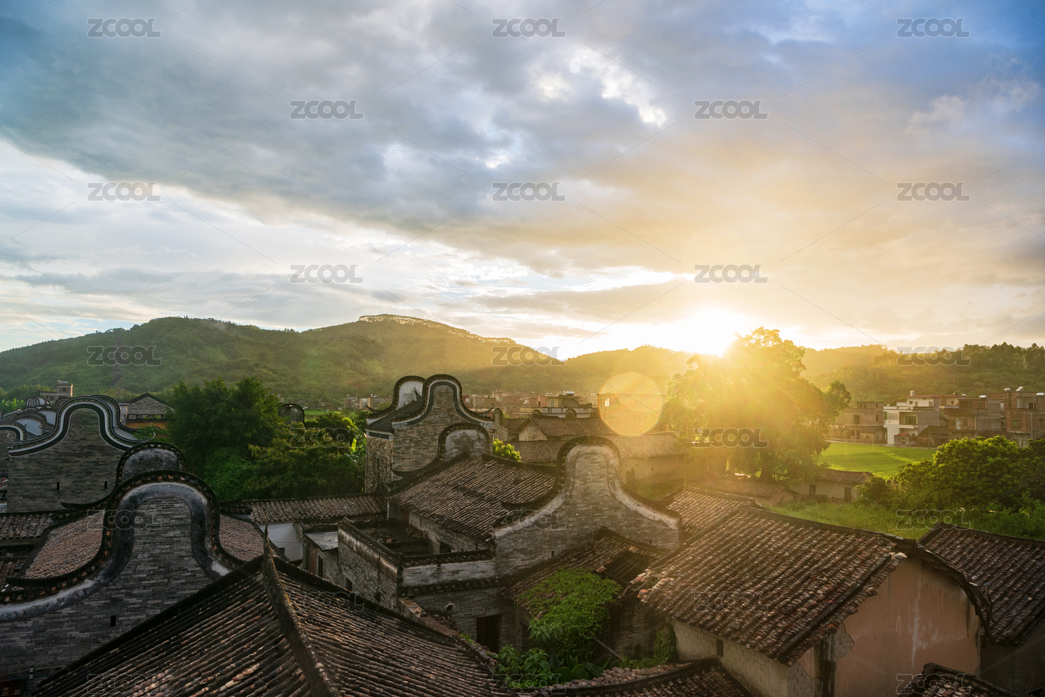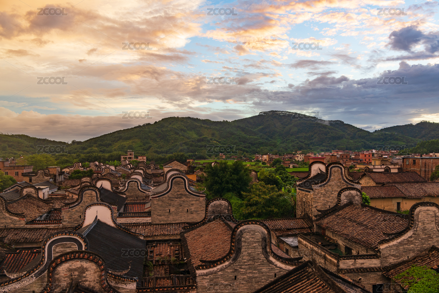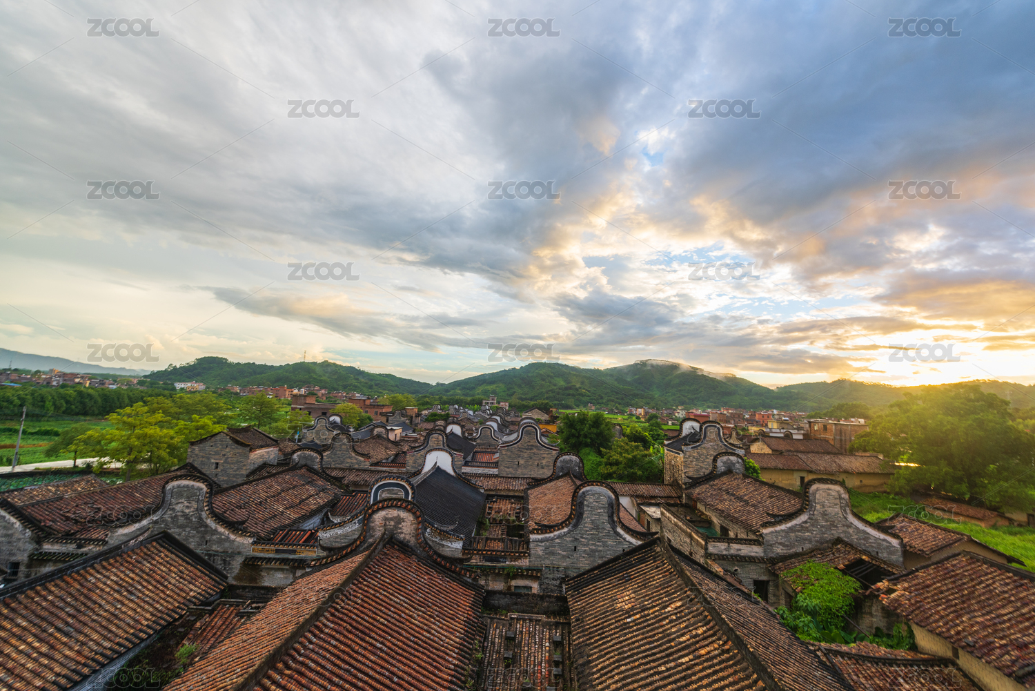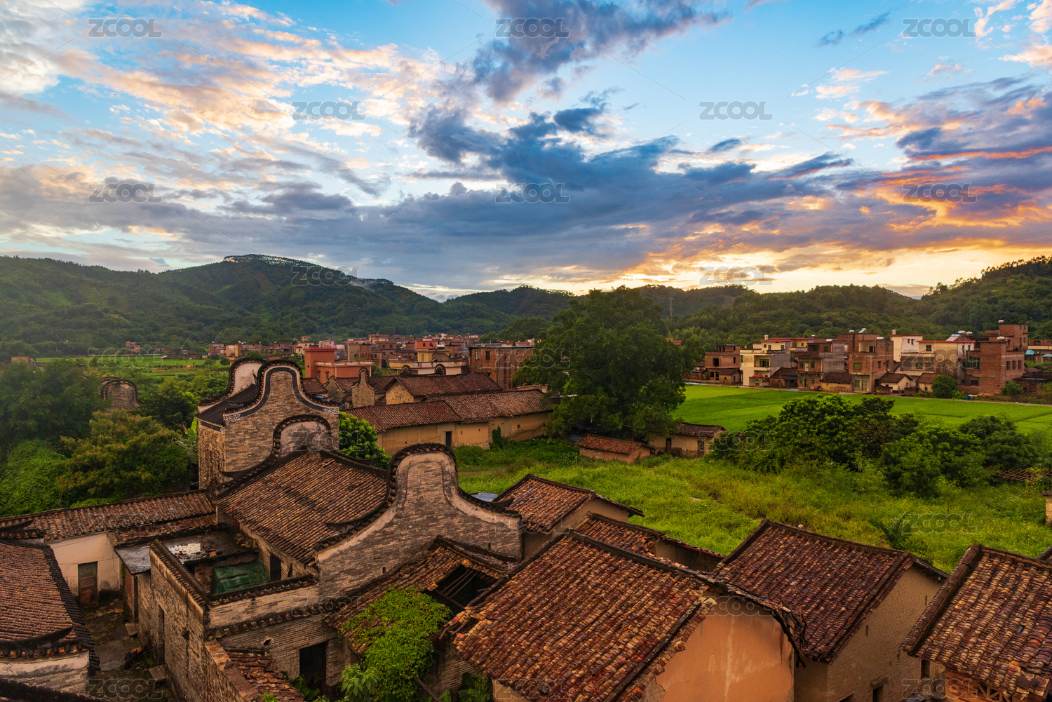 廣東清遠(yuǎn)佛岡上岳古村的雨后日落景觀