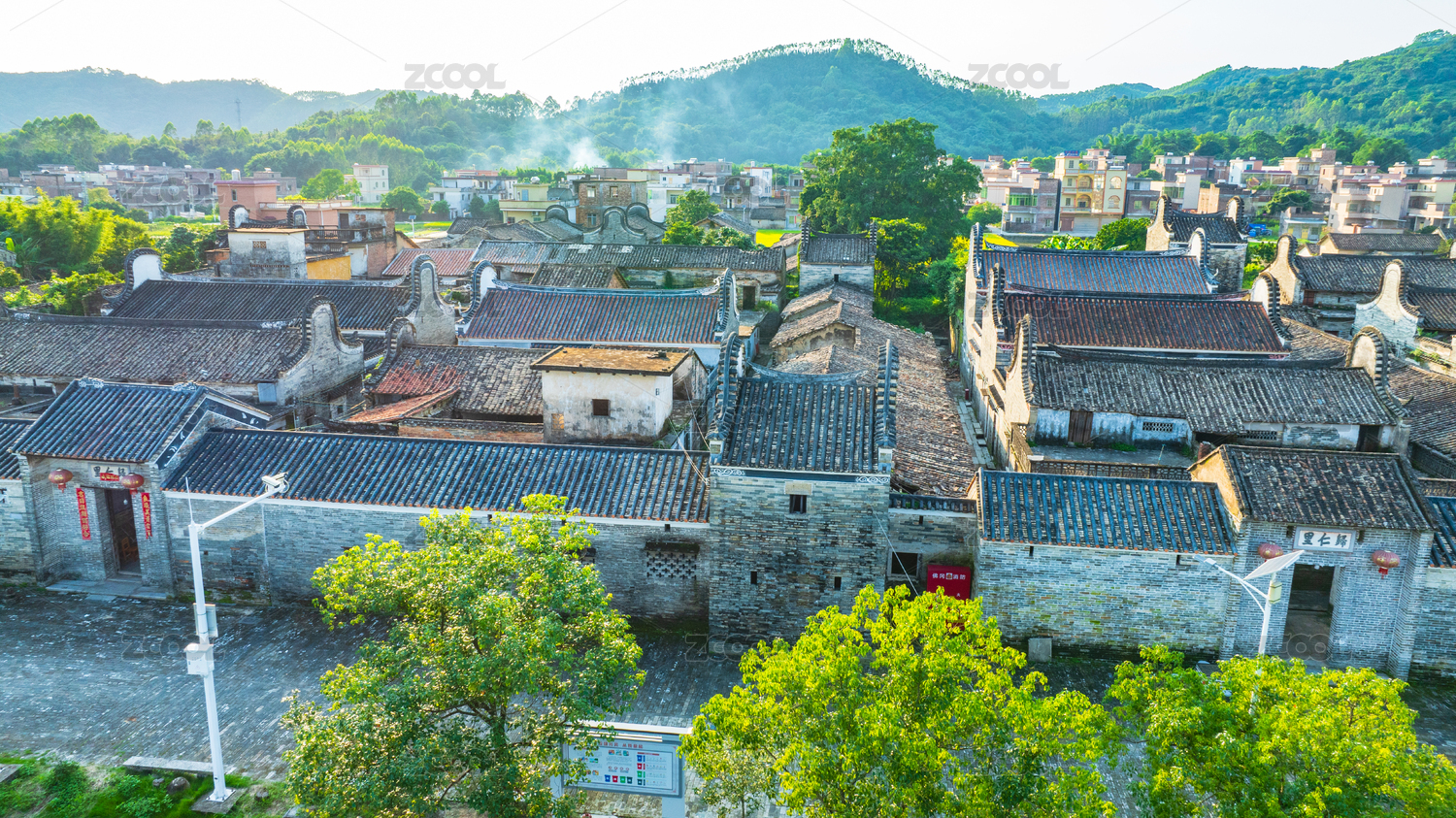 傍晚時(shí)的廣東清遠(yuǎn)佛岡縣上岳古村落航拍美景