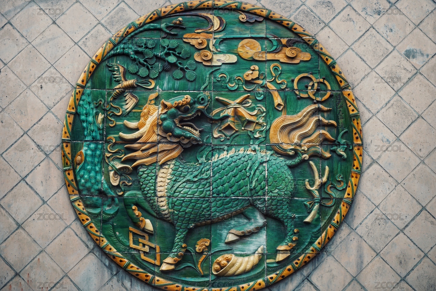 山西介休后土廟內(nèi)的琉璃瑞獸雕塑影壁