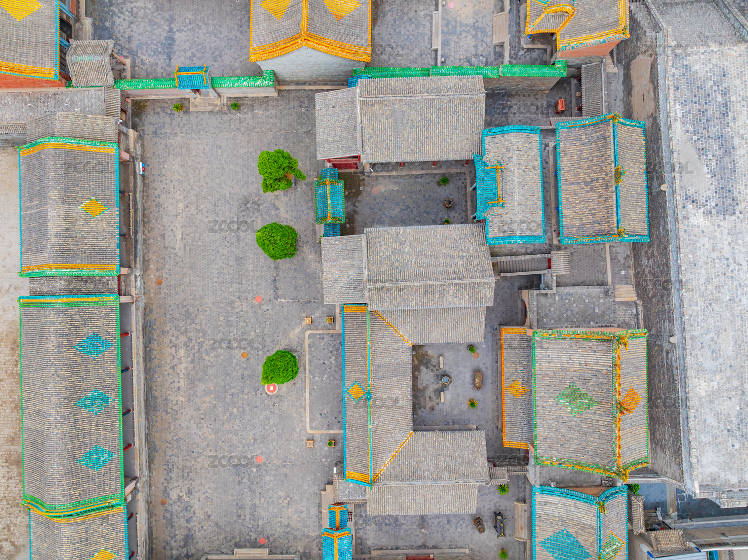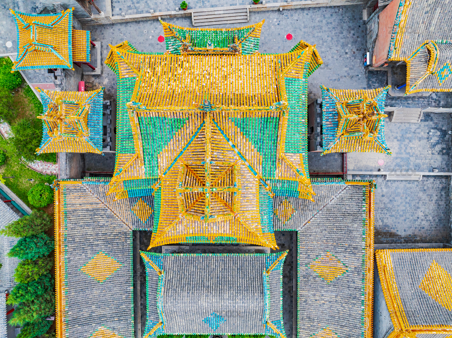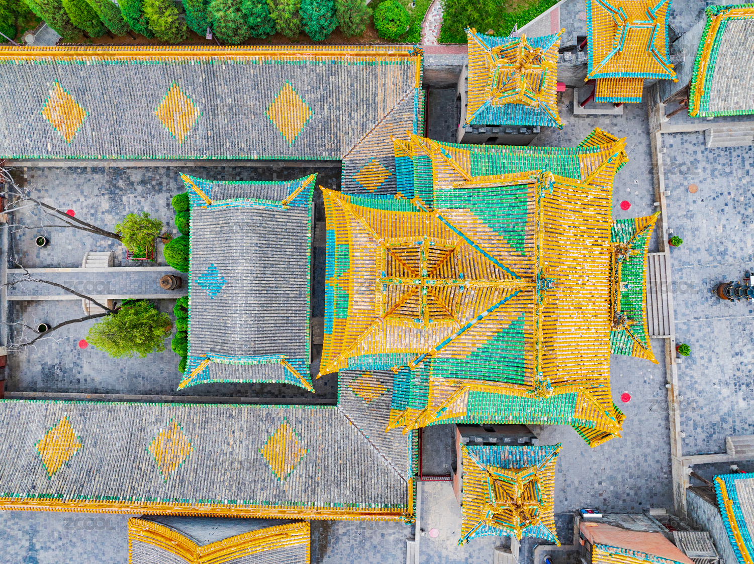 山西省介休市后土廟古建筑門窗及琉璃照壁