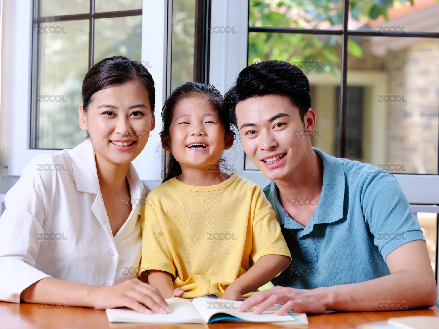 快樂的三口之家在一起看書