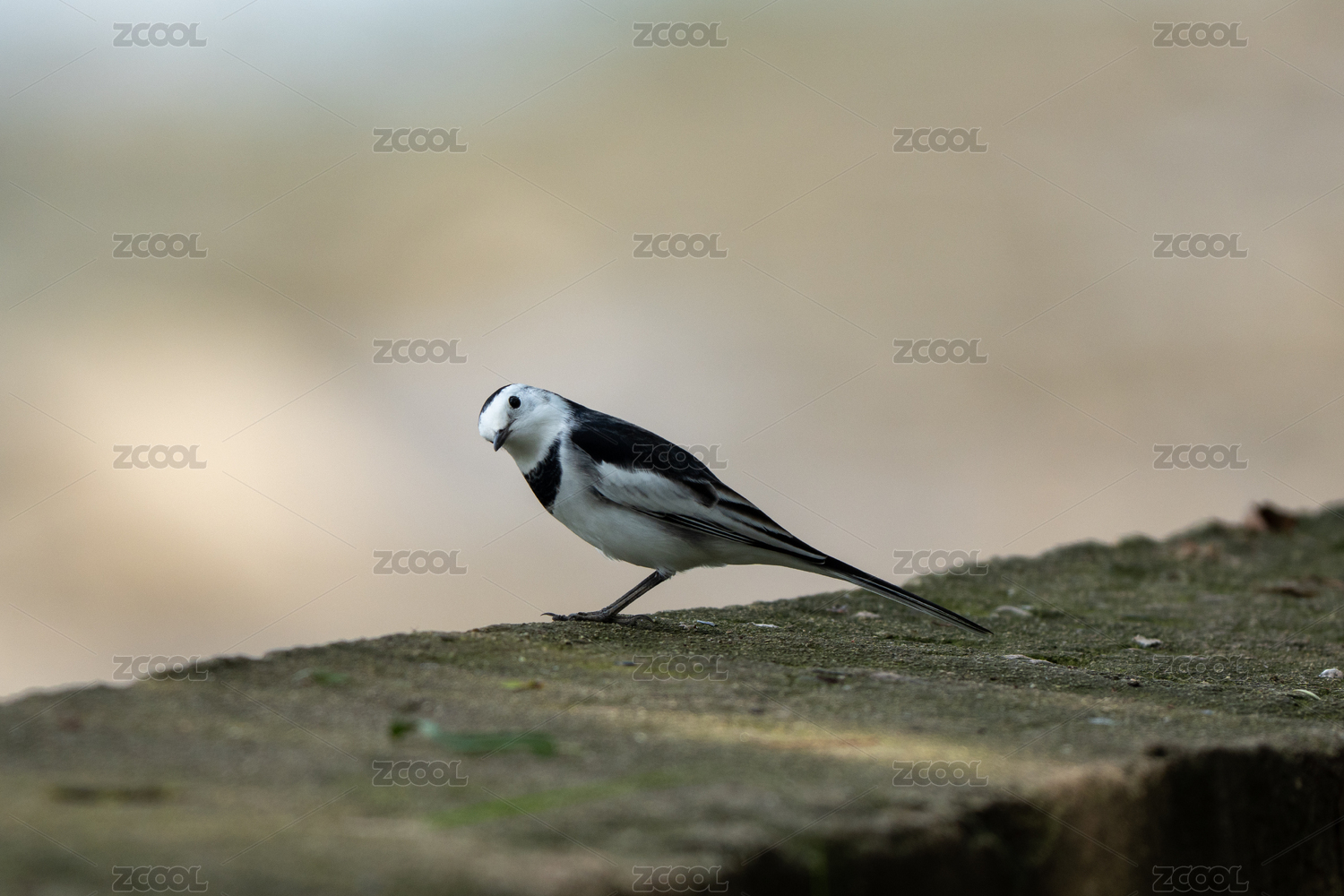 白鹡鸰鳥站立在樹樁上伺機捕食路過的飛蟲