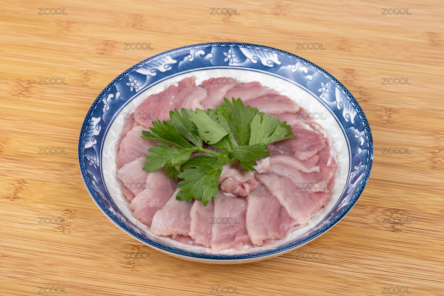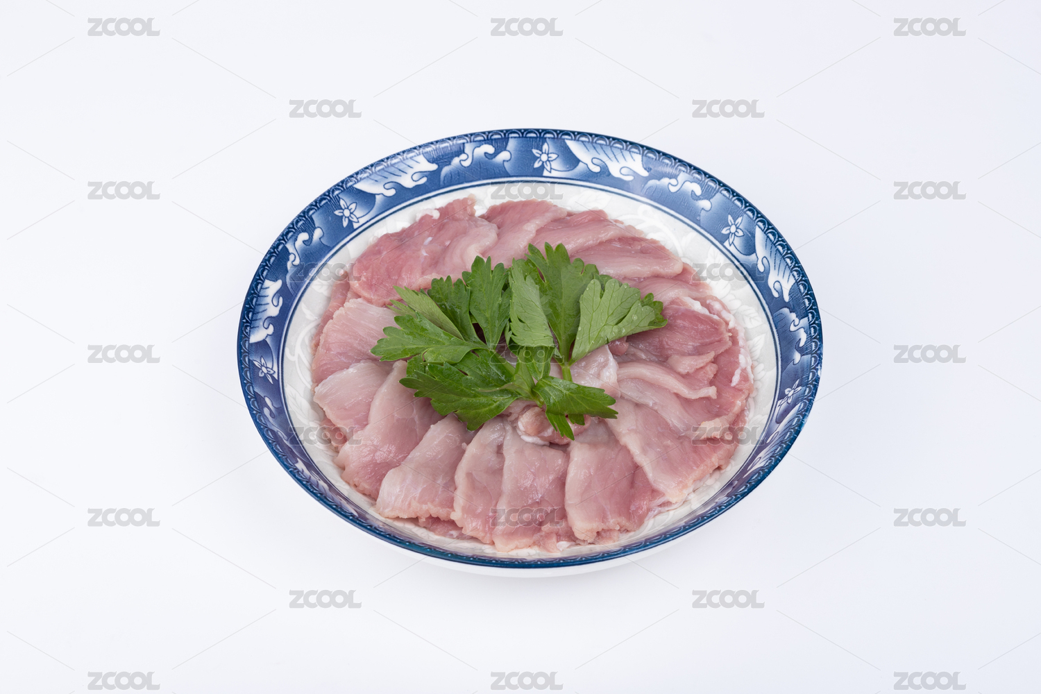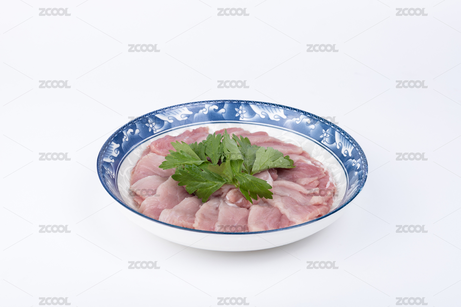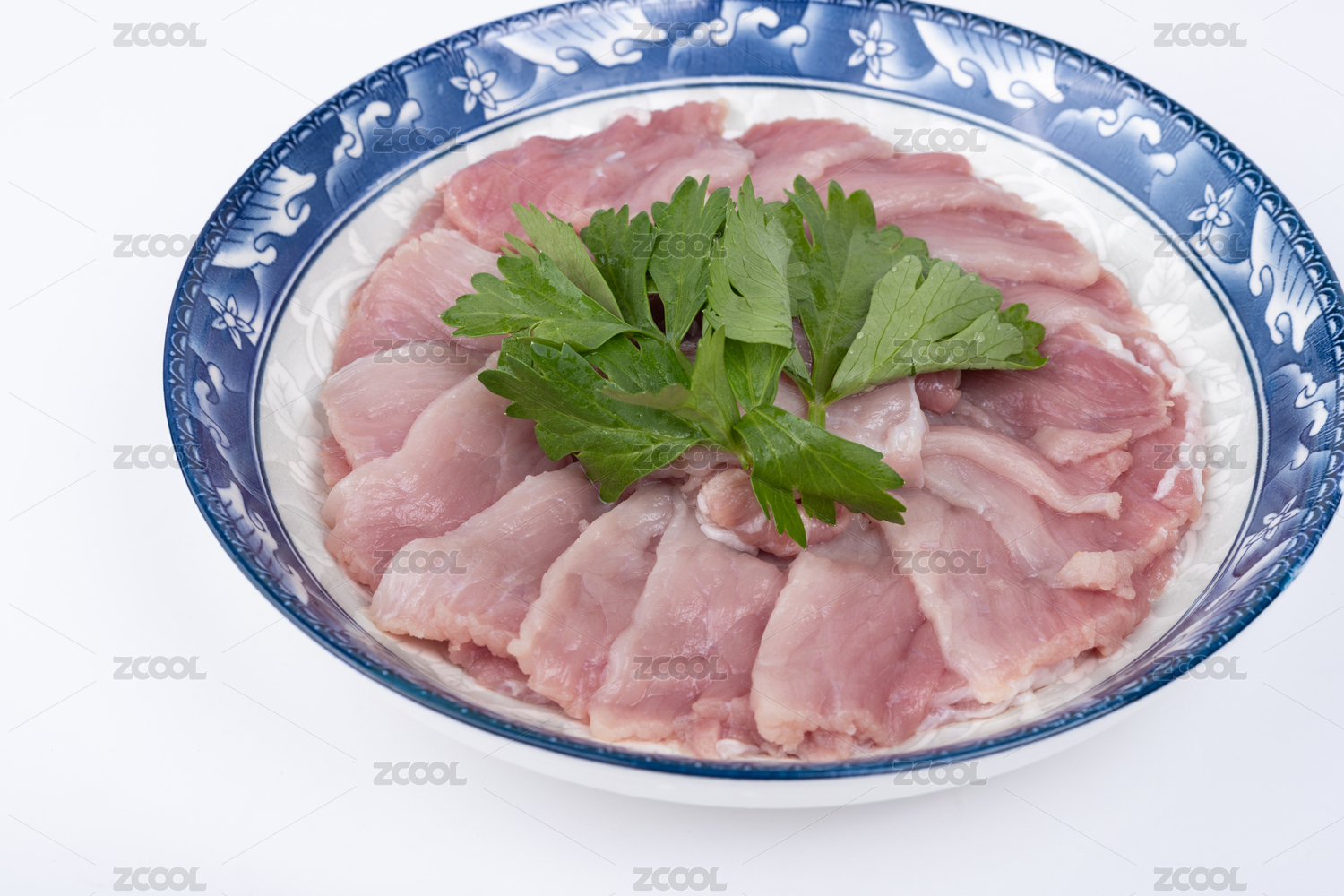 盤子里的豬肉二刀肉瘦肉片