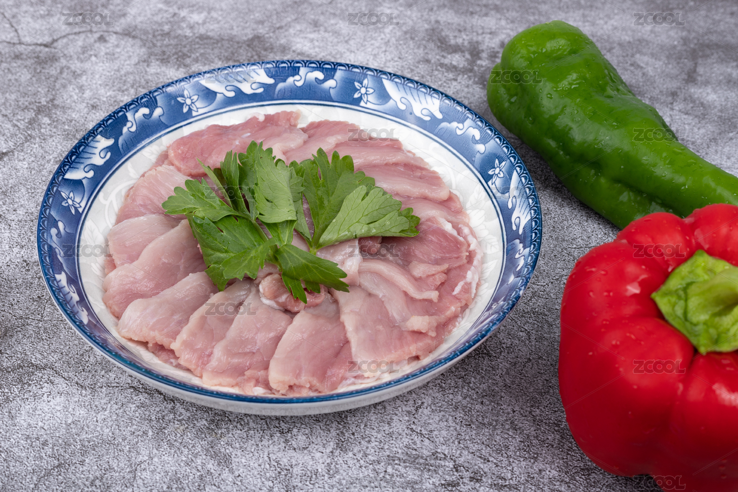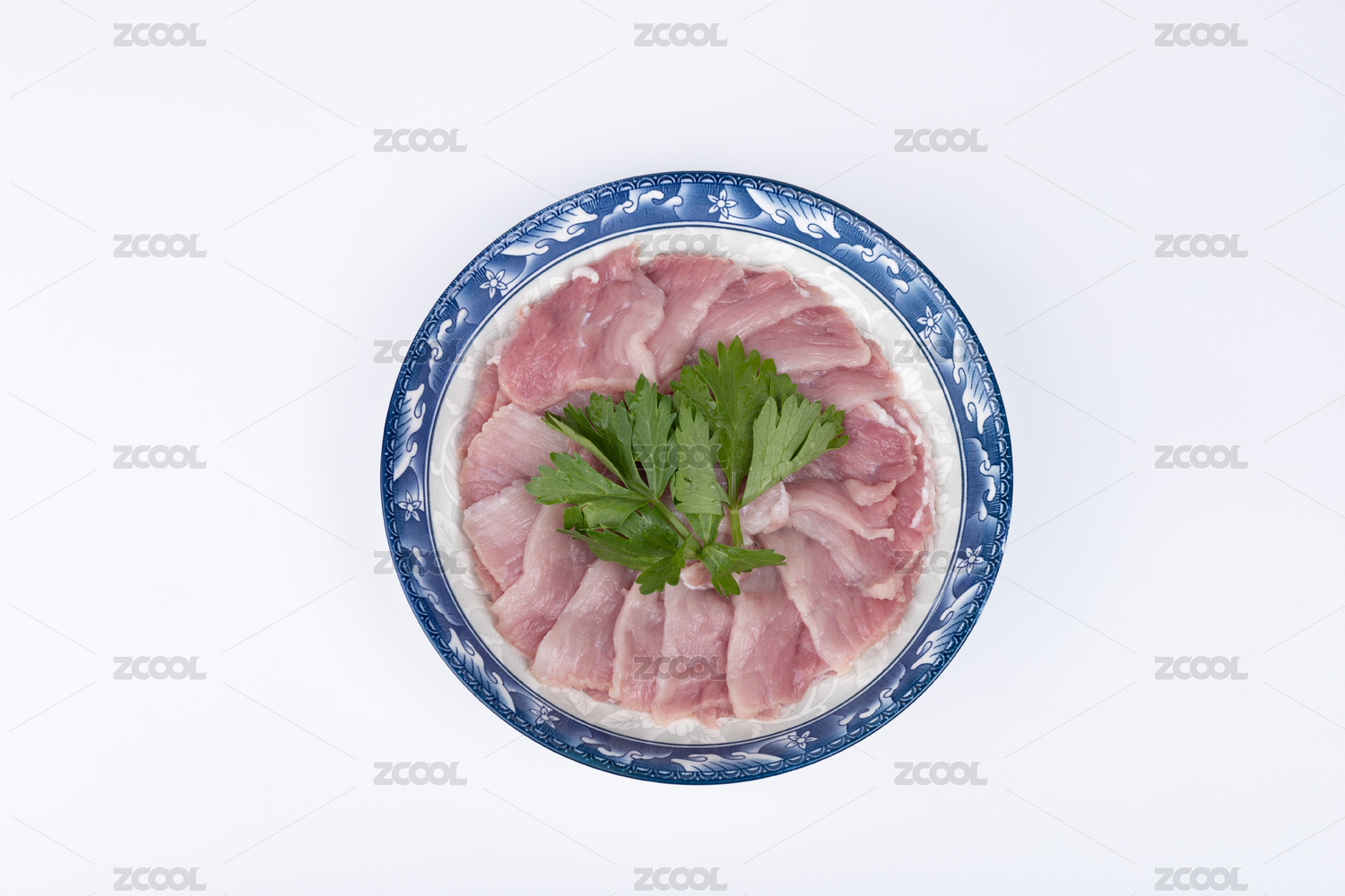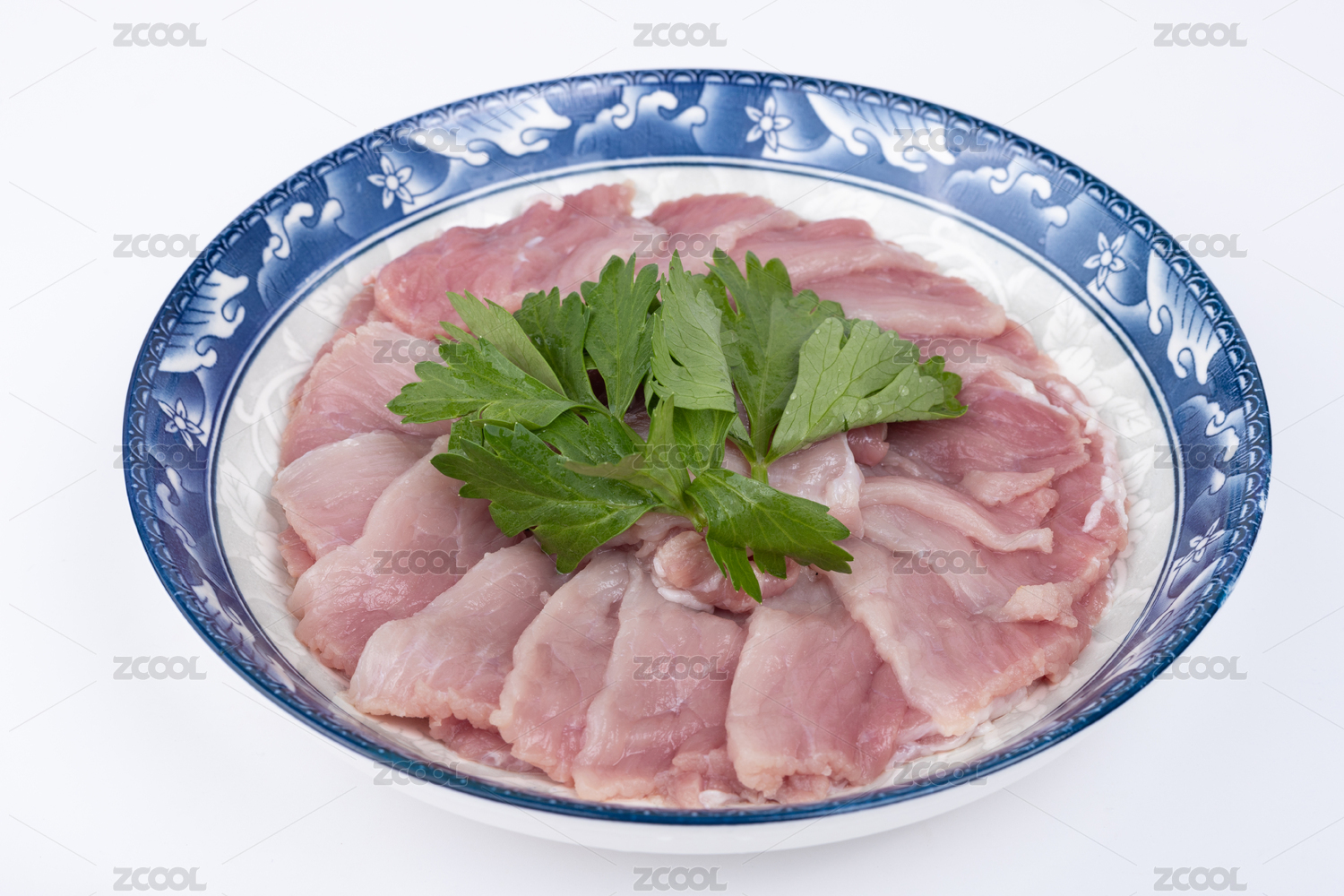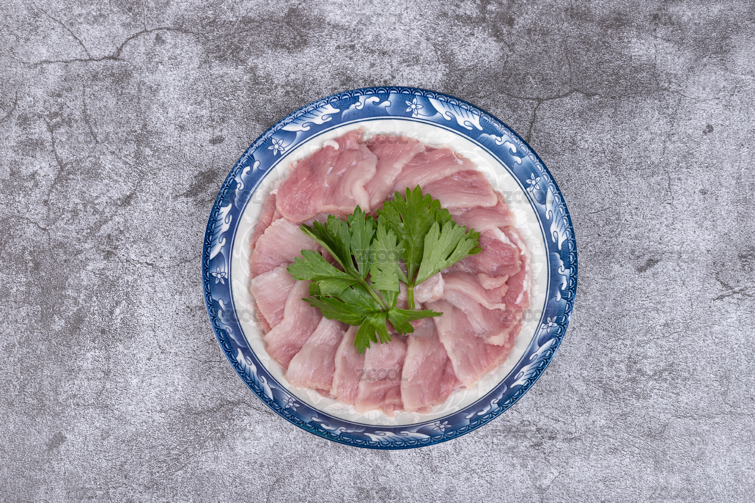 盤子里的豬肉二刀肉瘦肉片