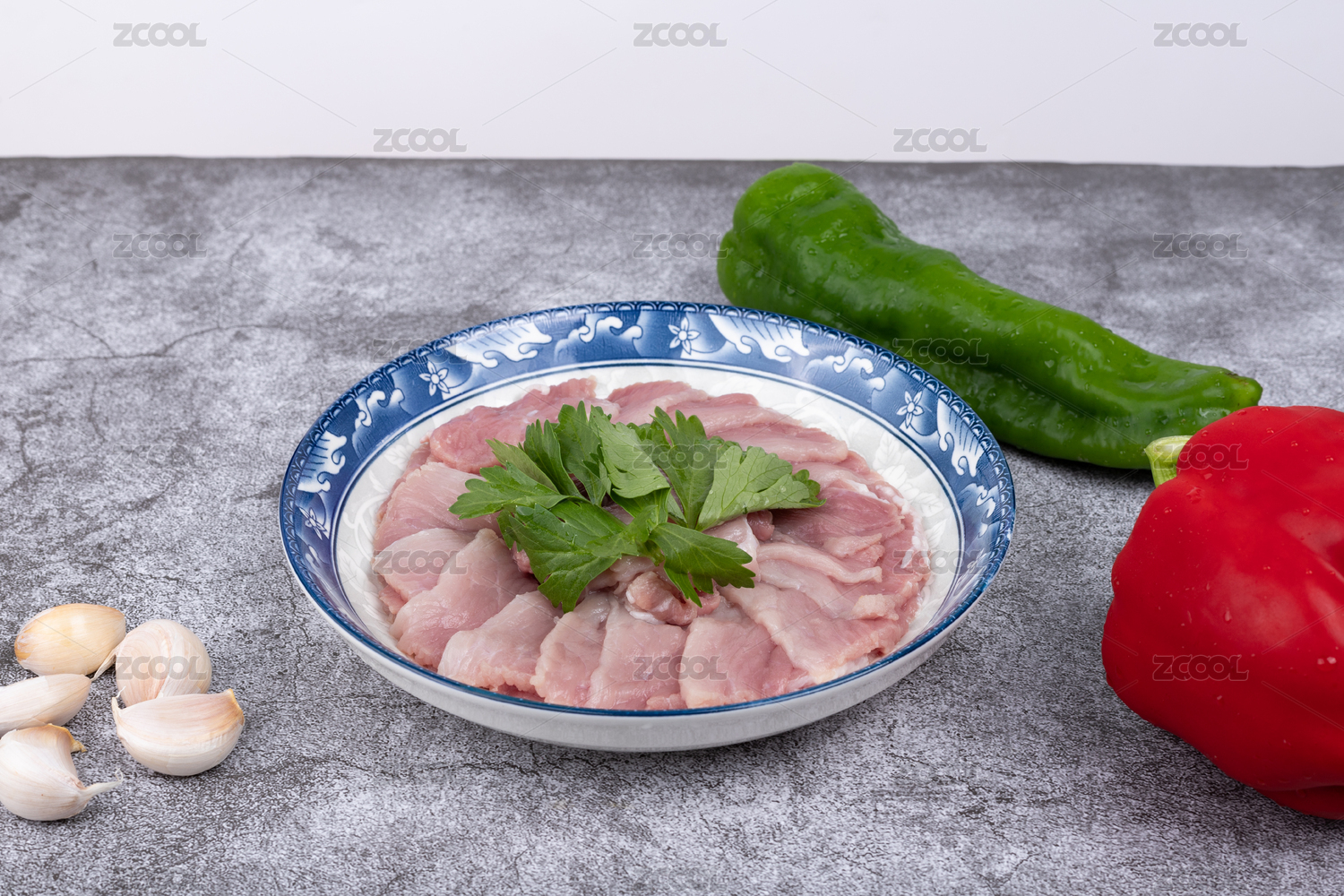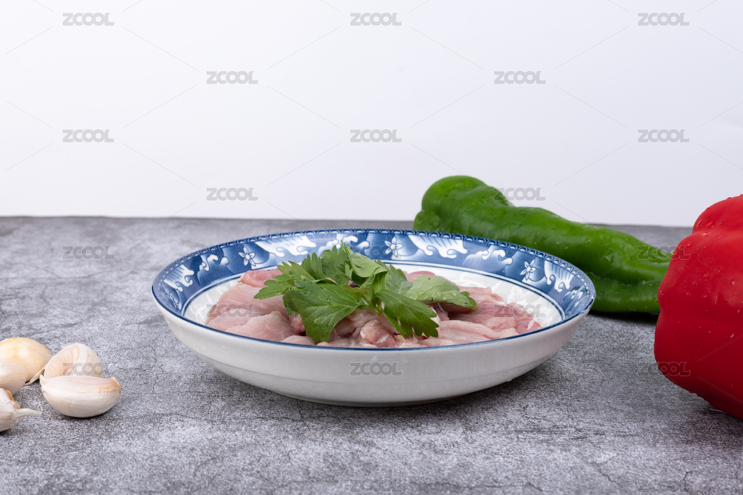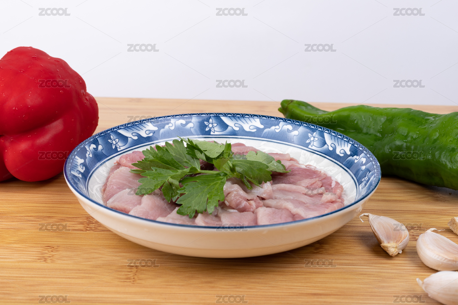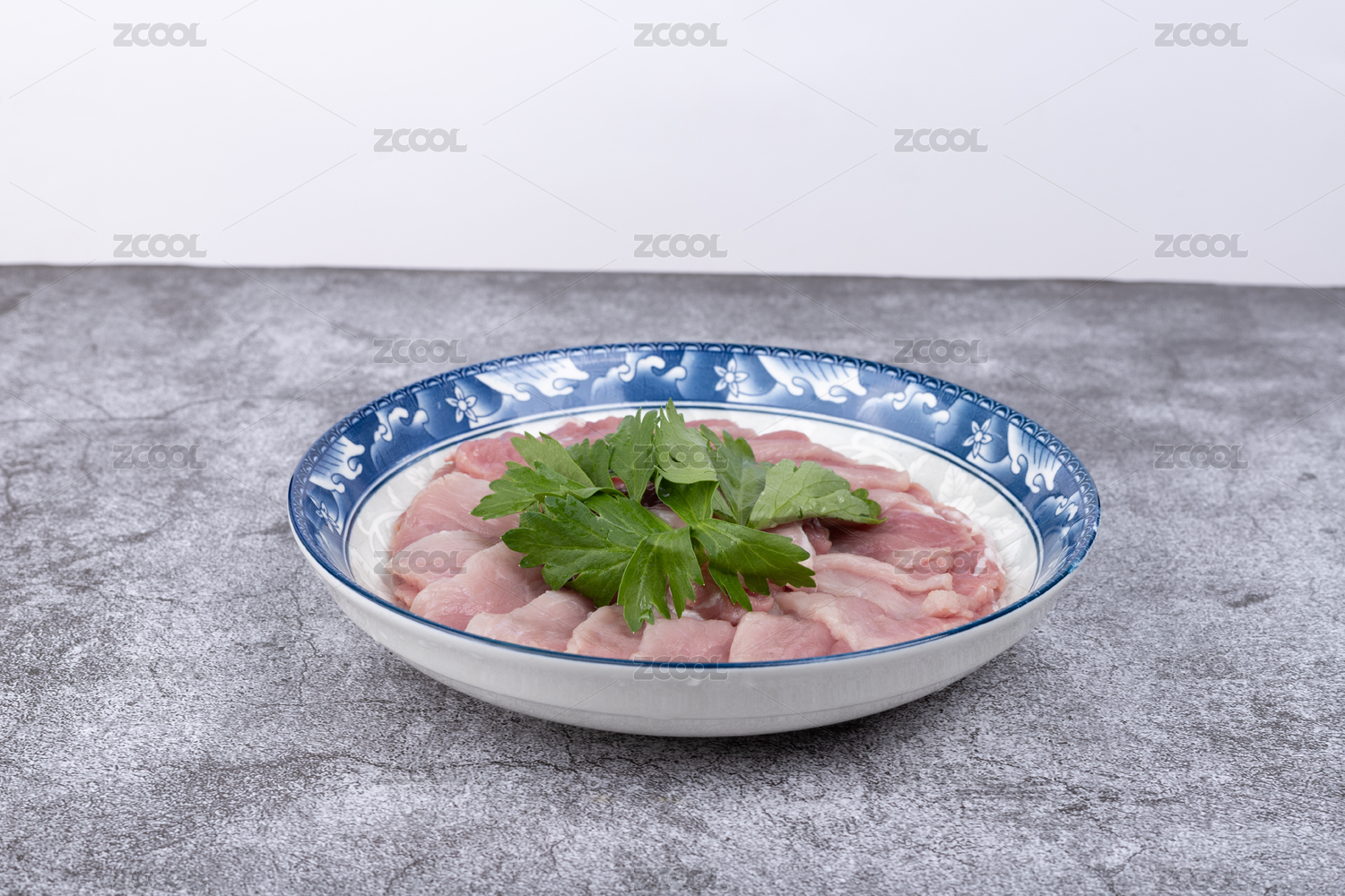 盤子里的豬肉二刀肉瘦肉片