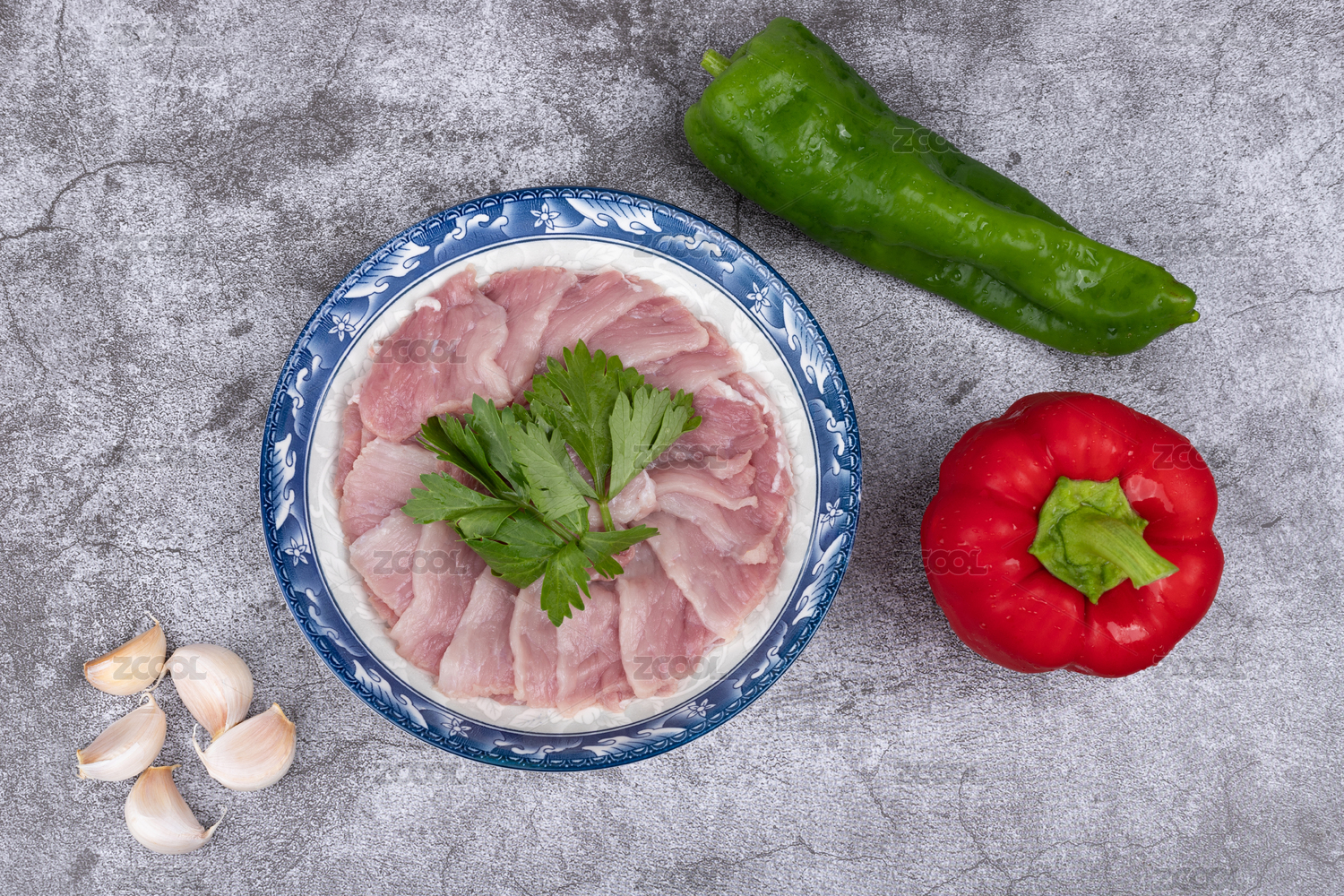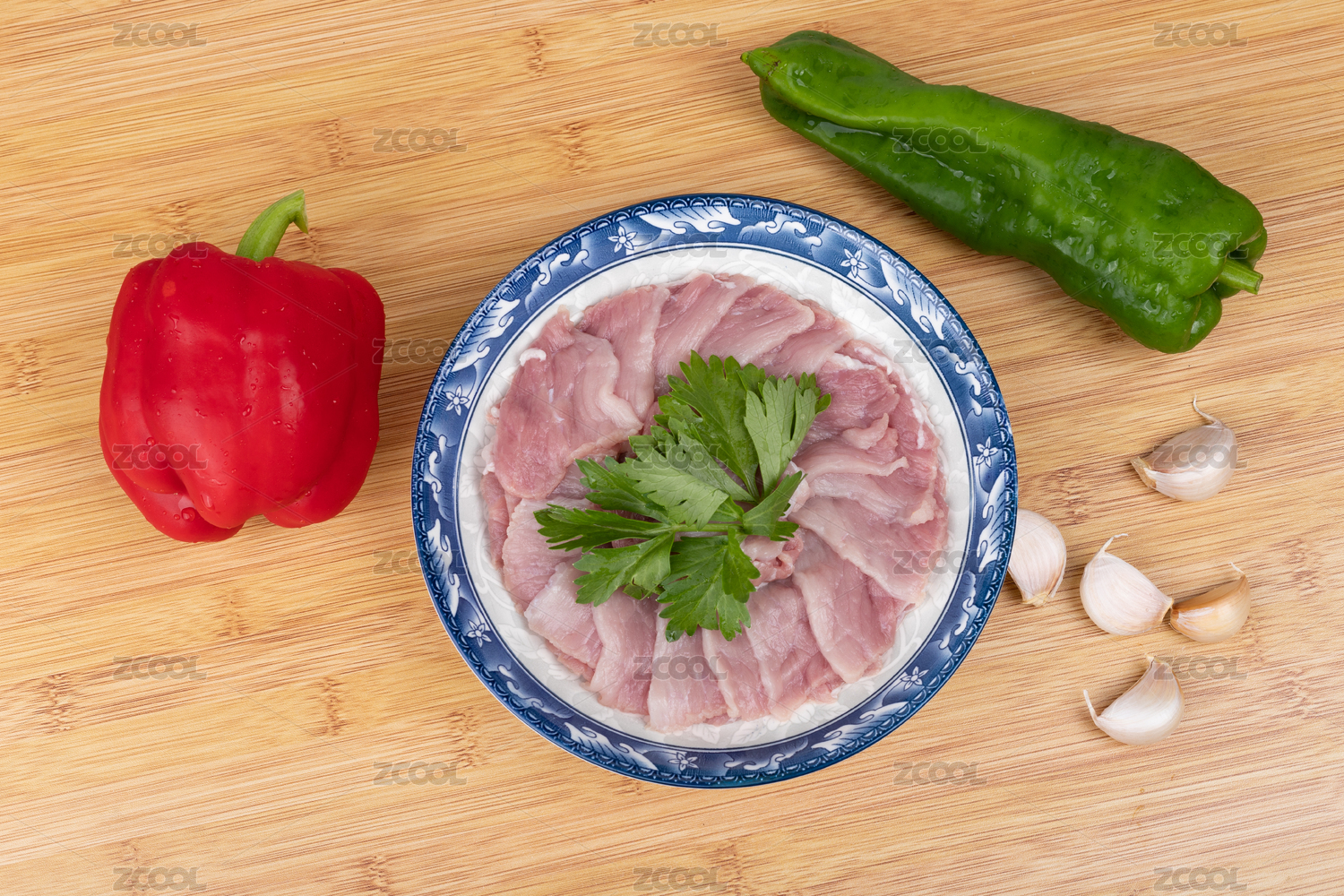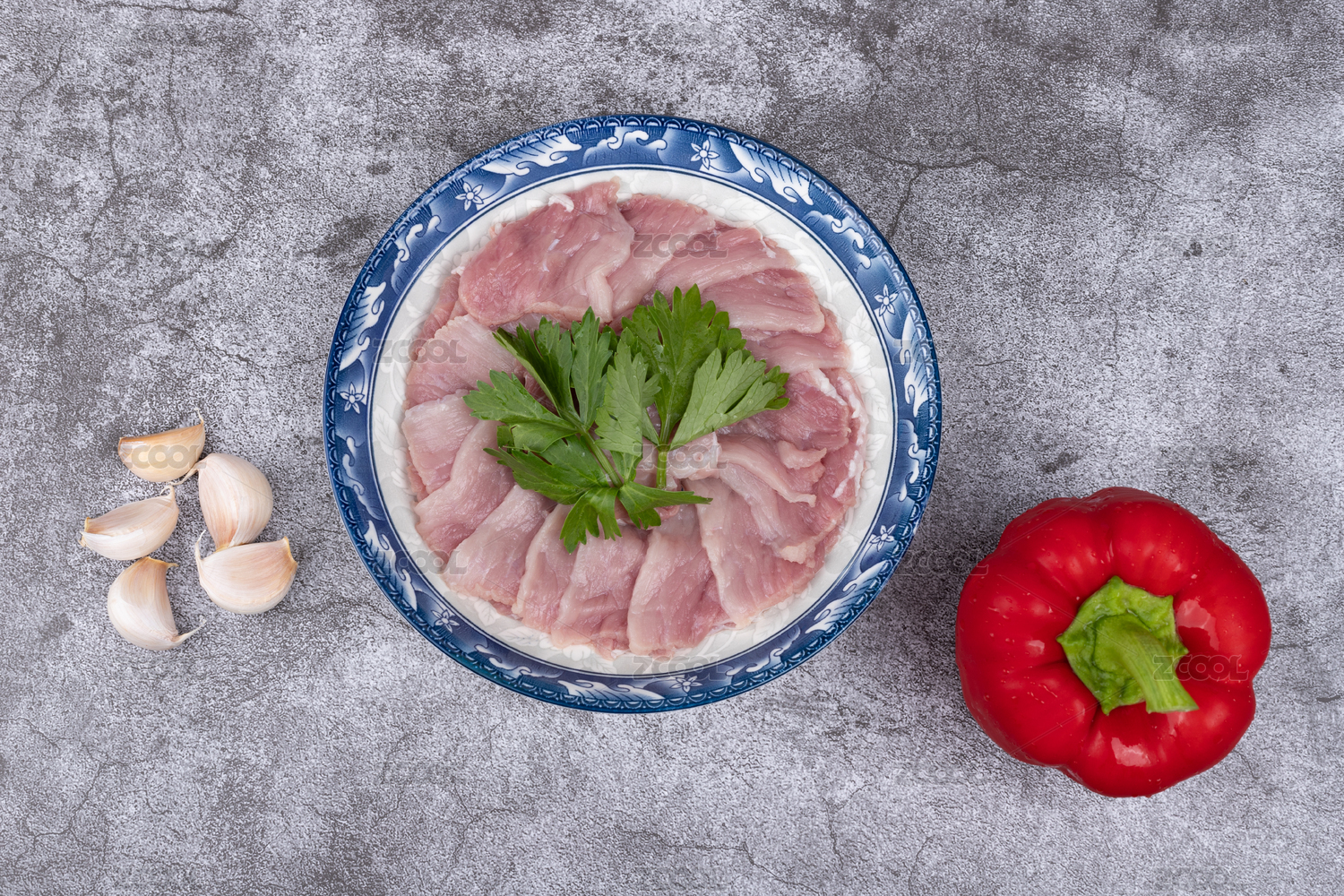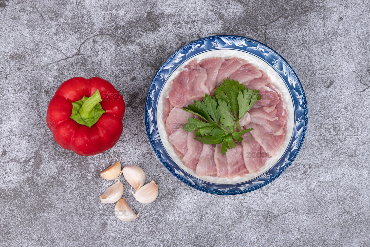 盤子里的豬肉二刀肉瘦肉片