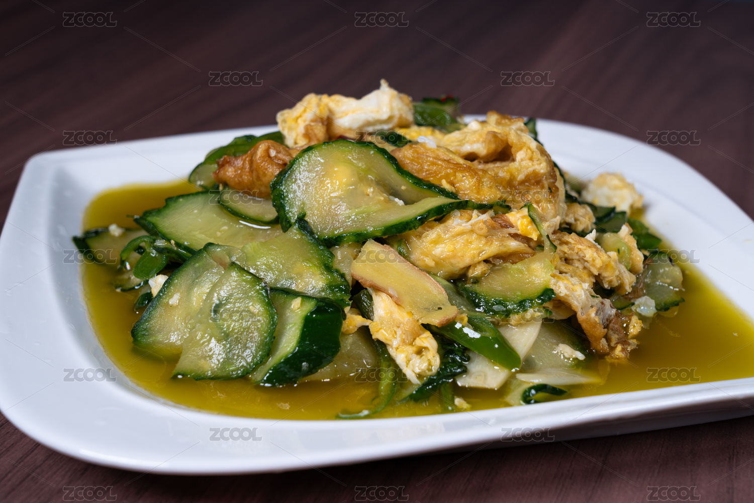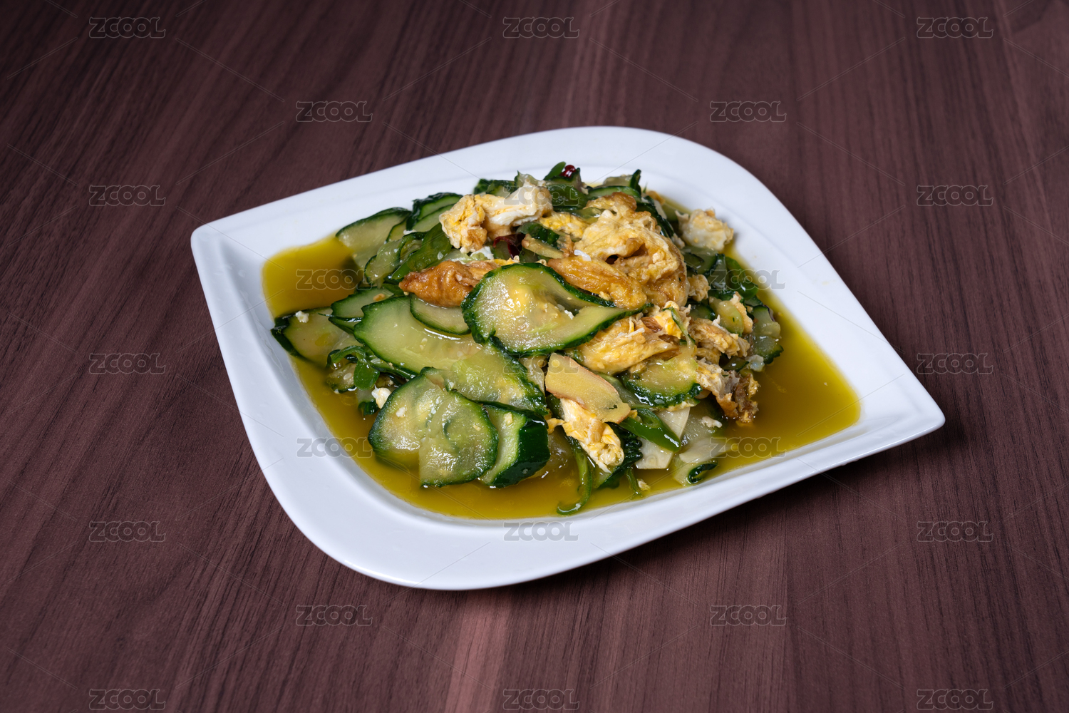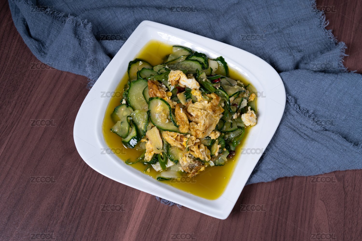 白盤(pán)子里的黃瓜炒雞蛋