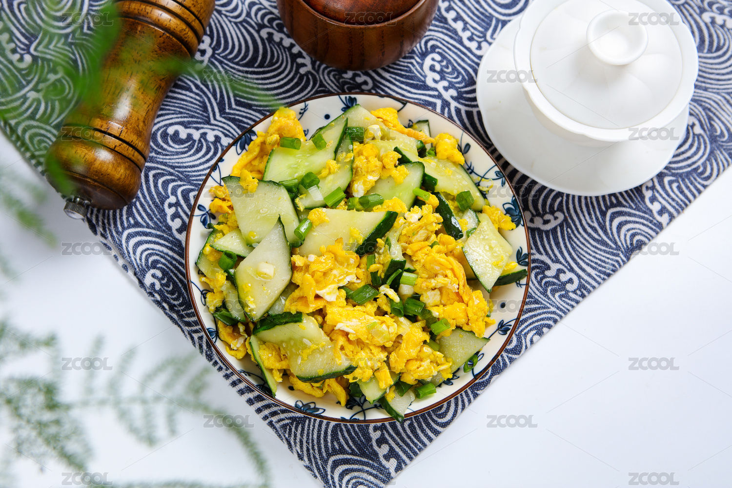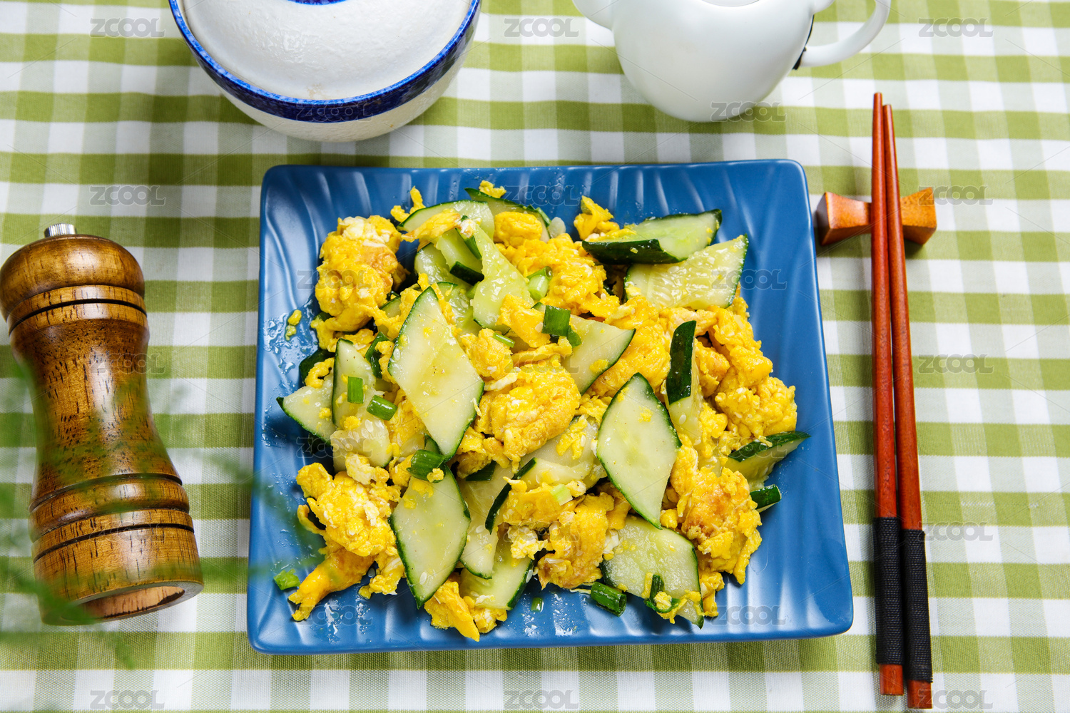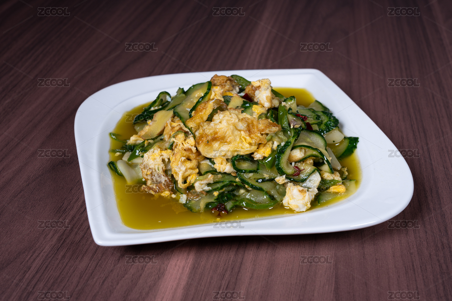 白盤(pán)子里的黃瓜炒雞蛋