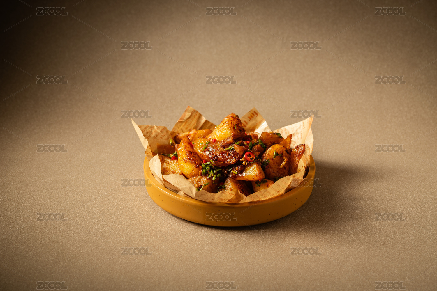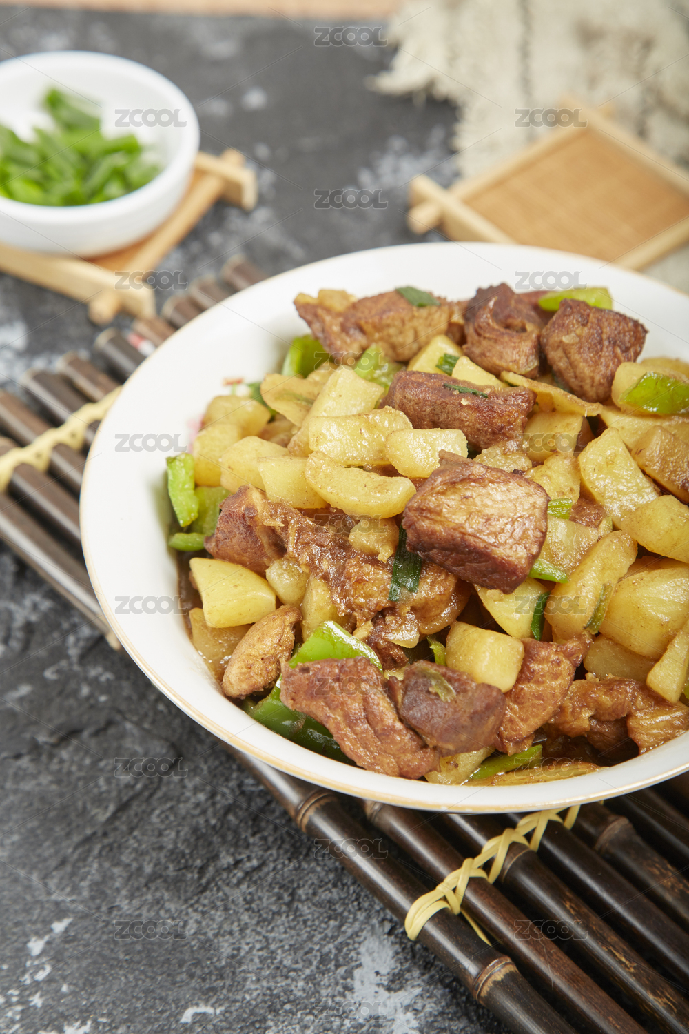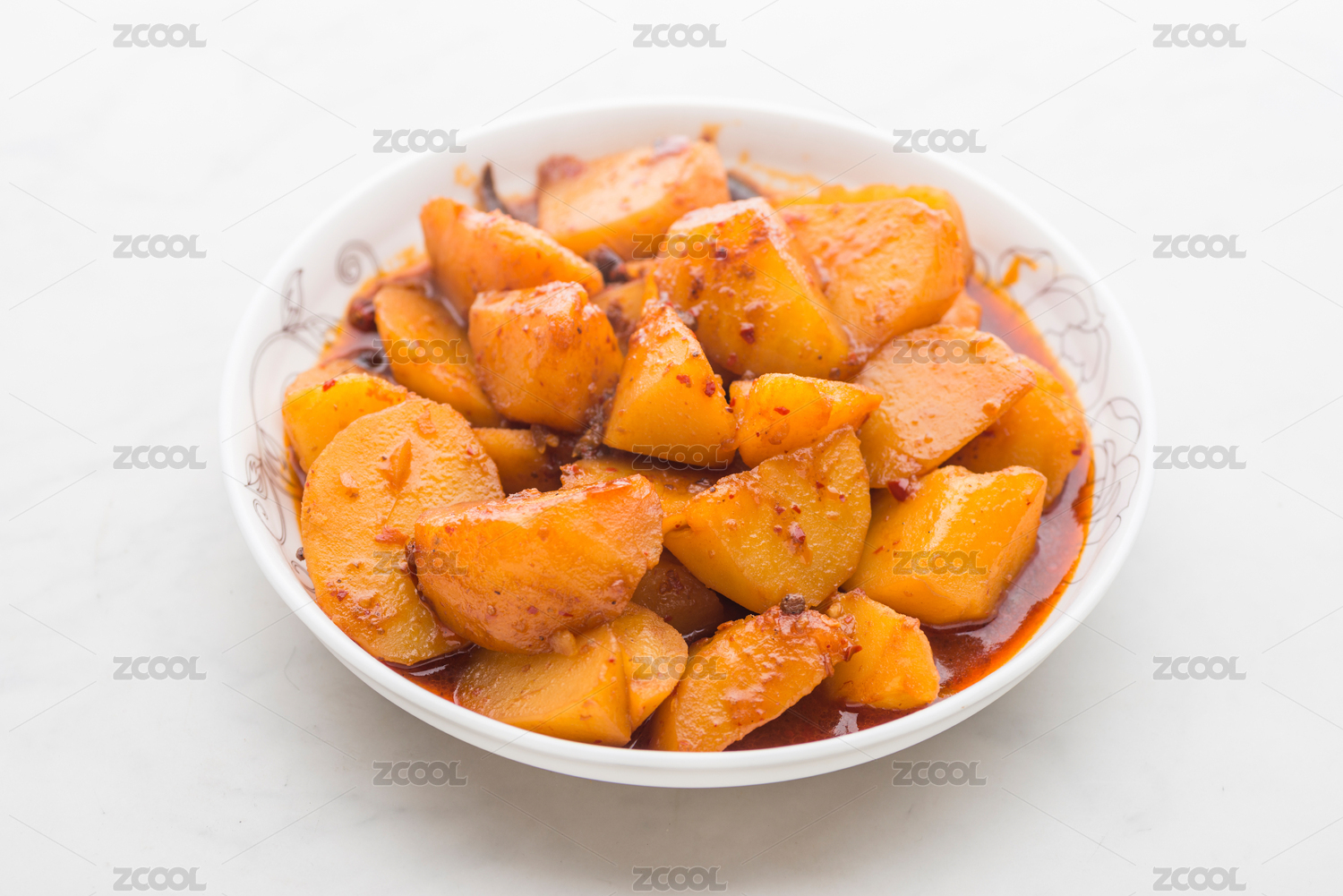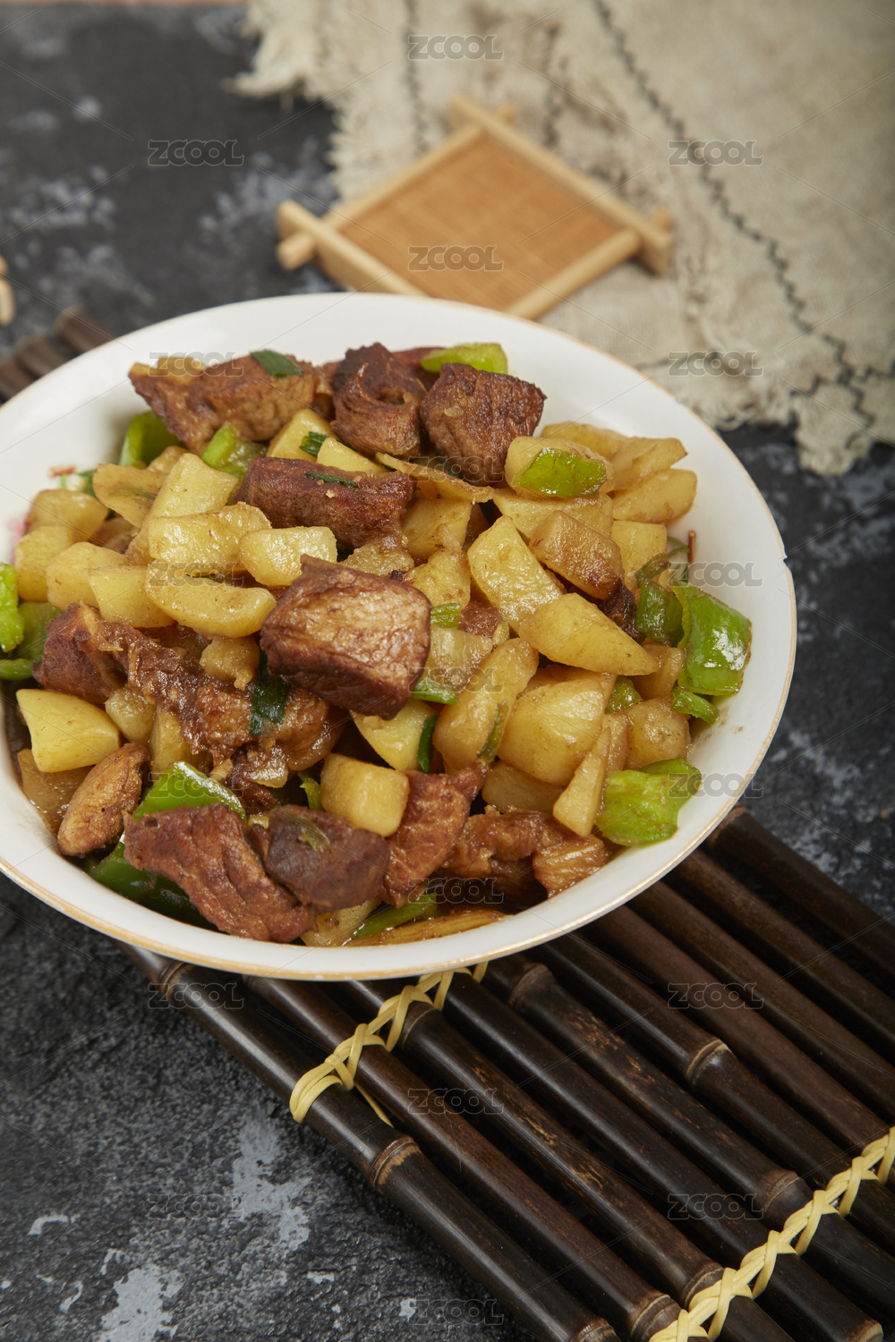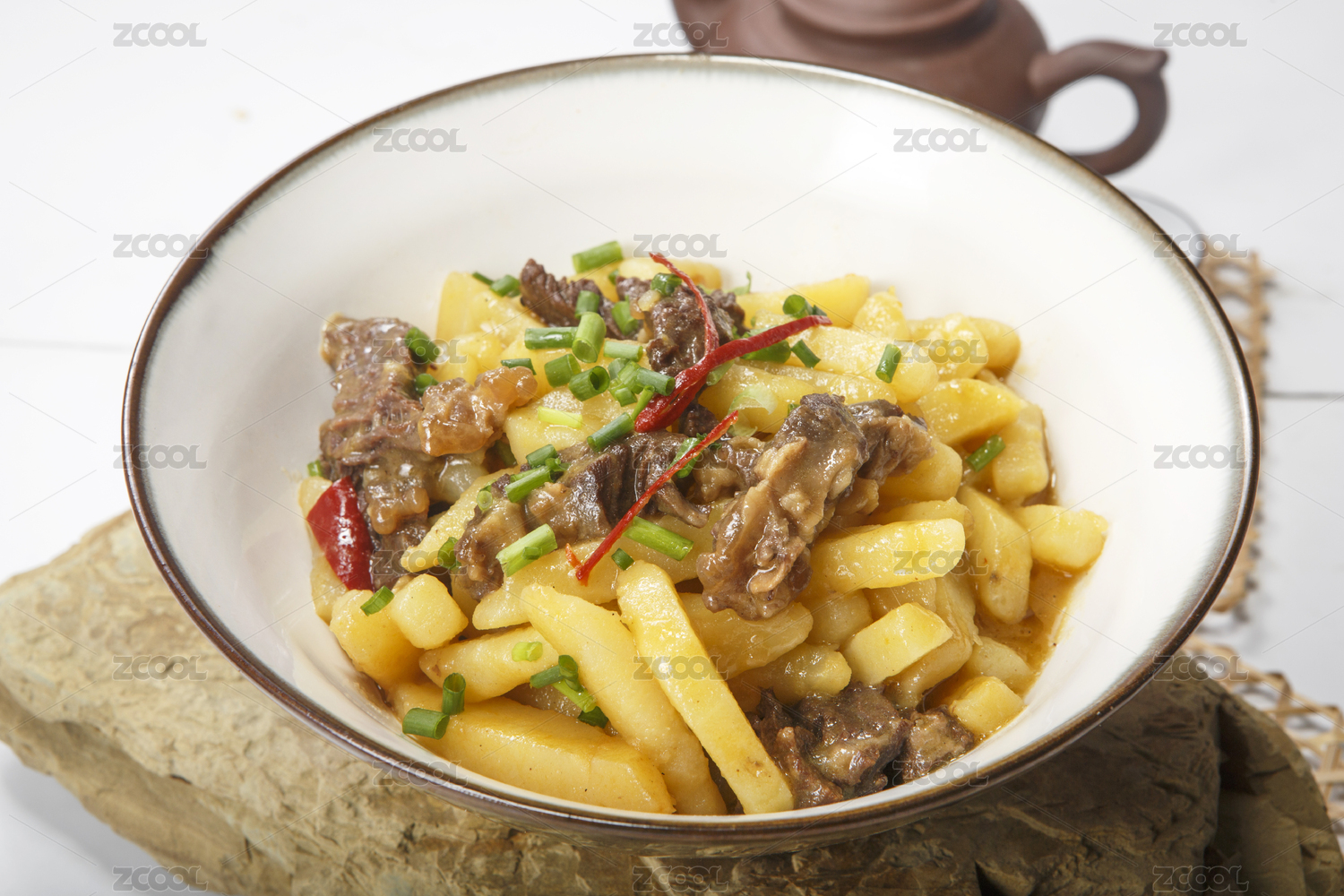 美味家常菜肉丸燒土豆盛放在白色大瓷碗中