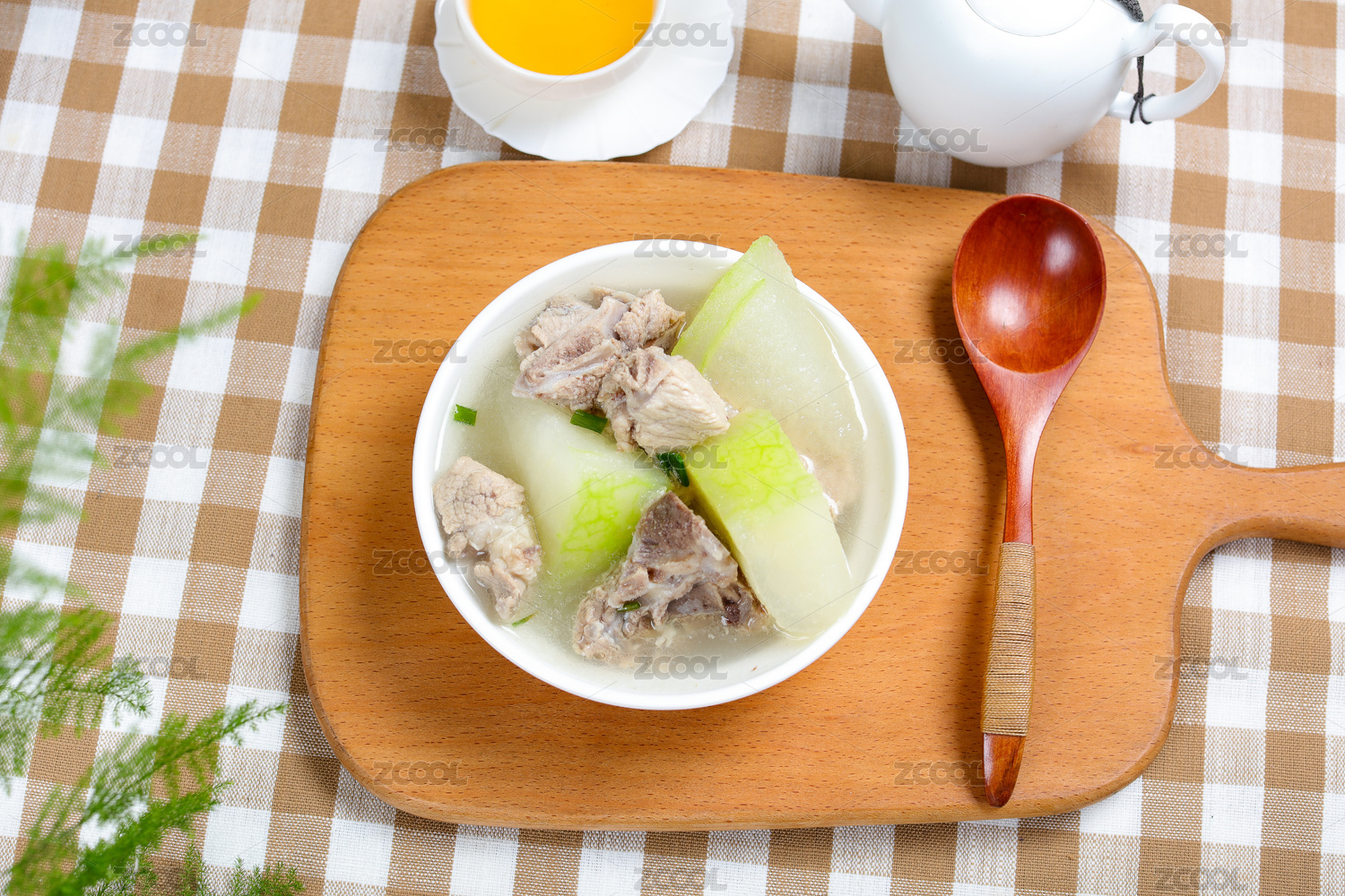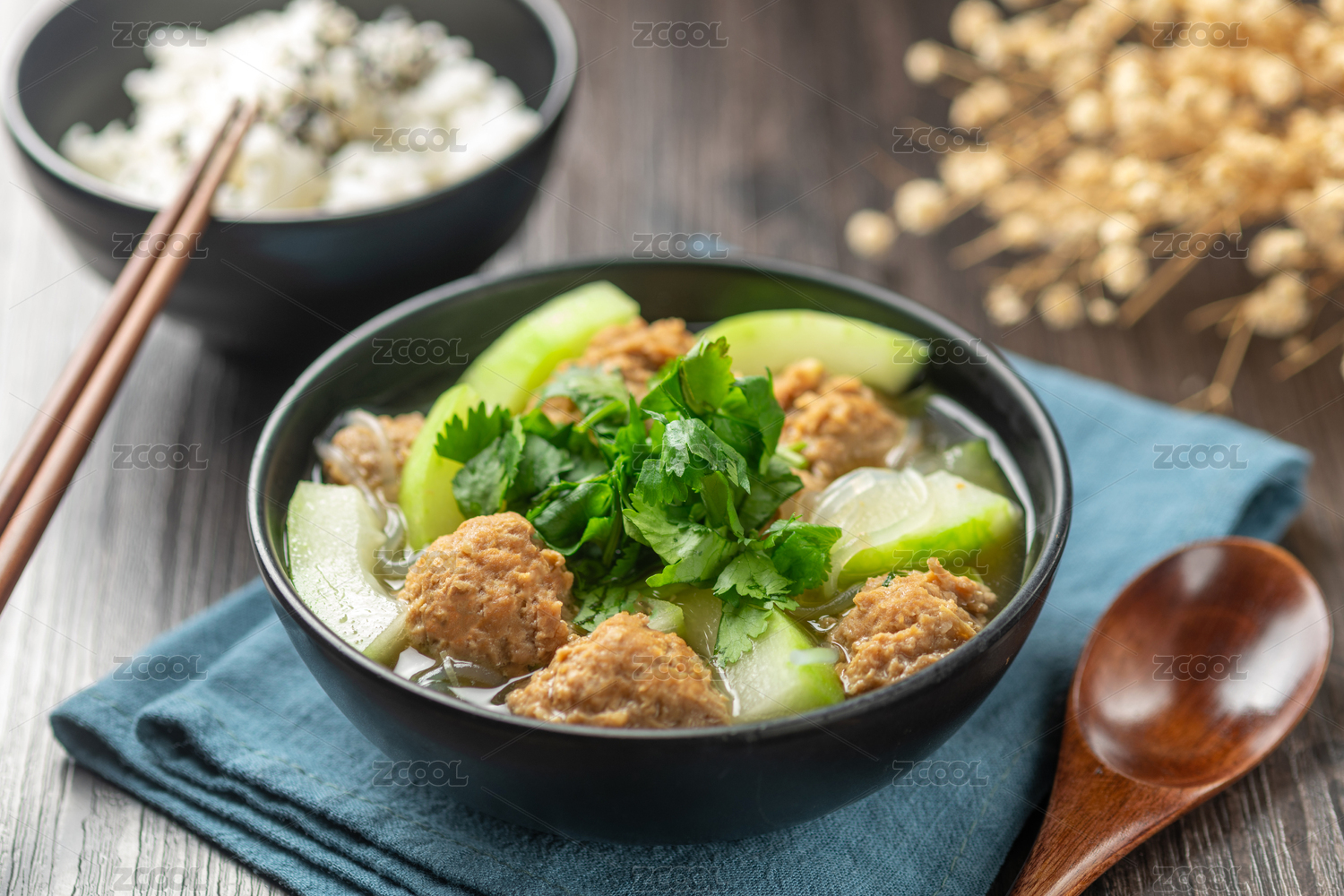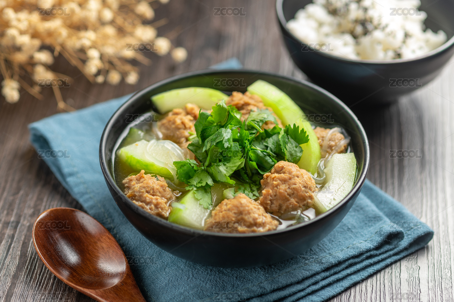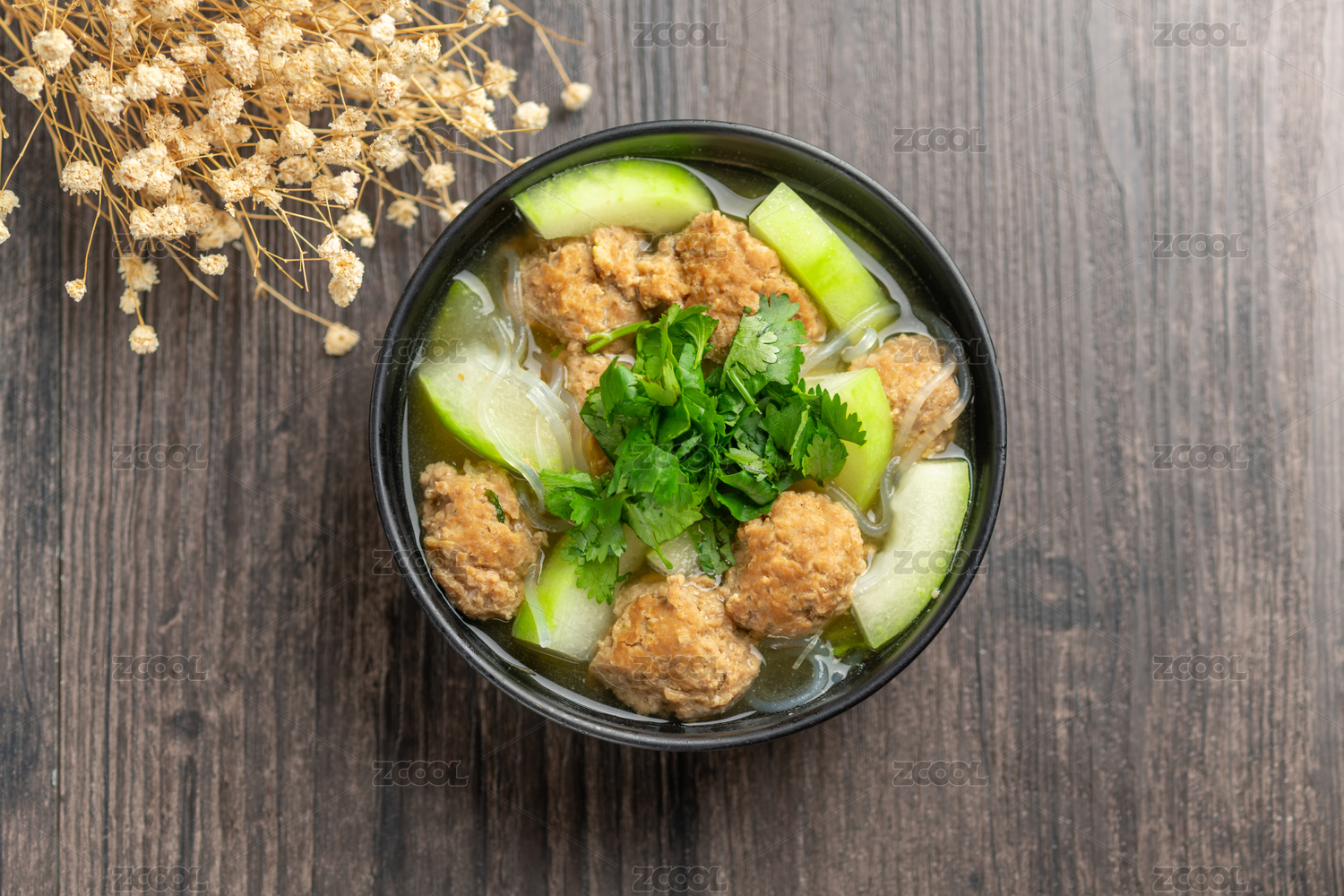 冬瓜丸子湯特寫木桌面背景