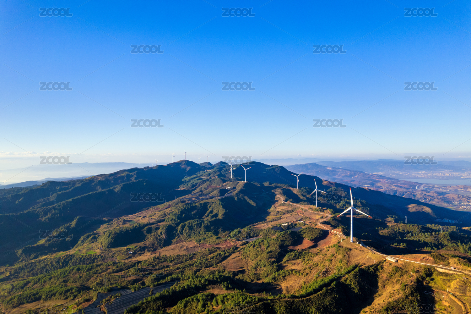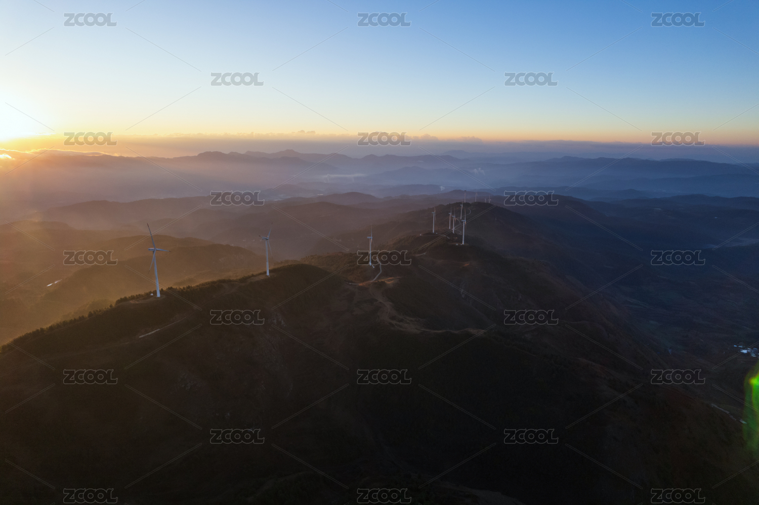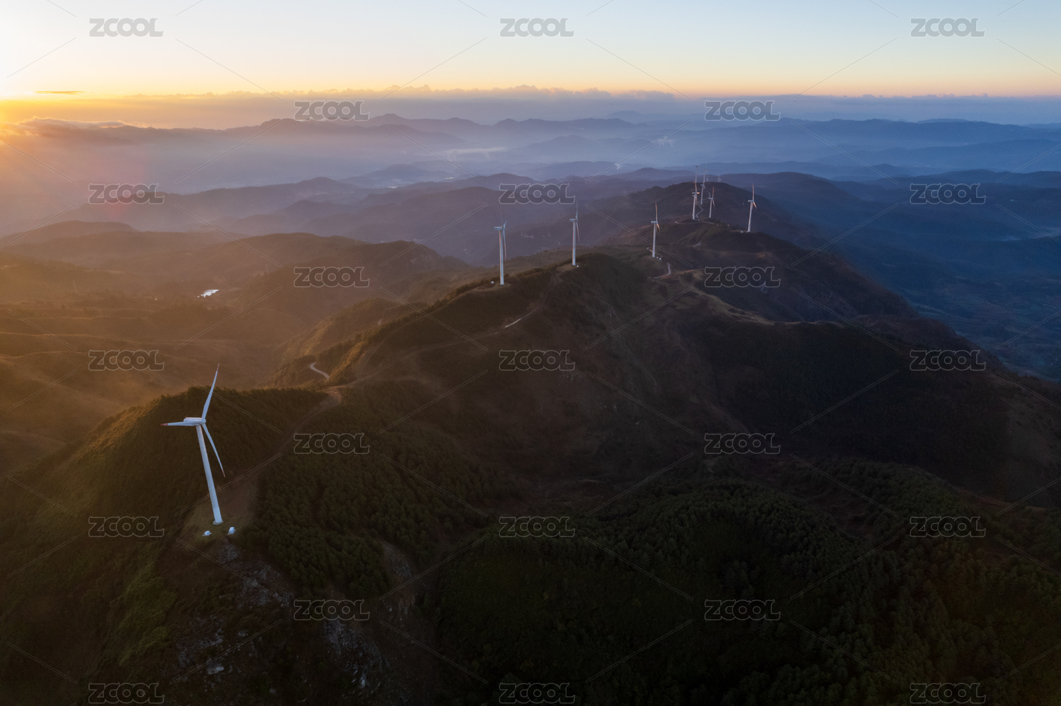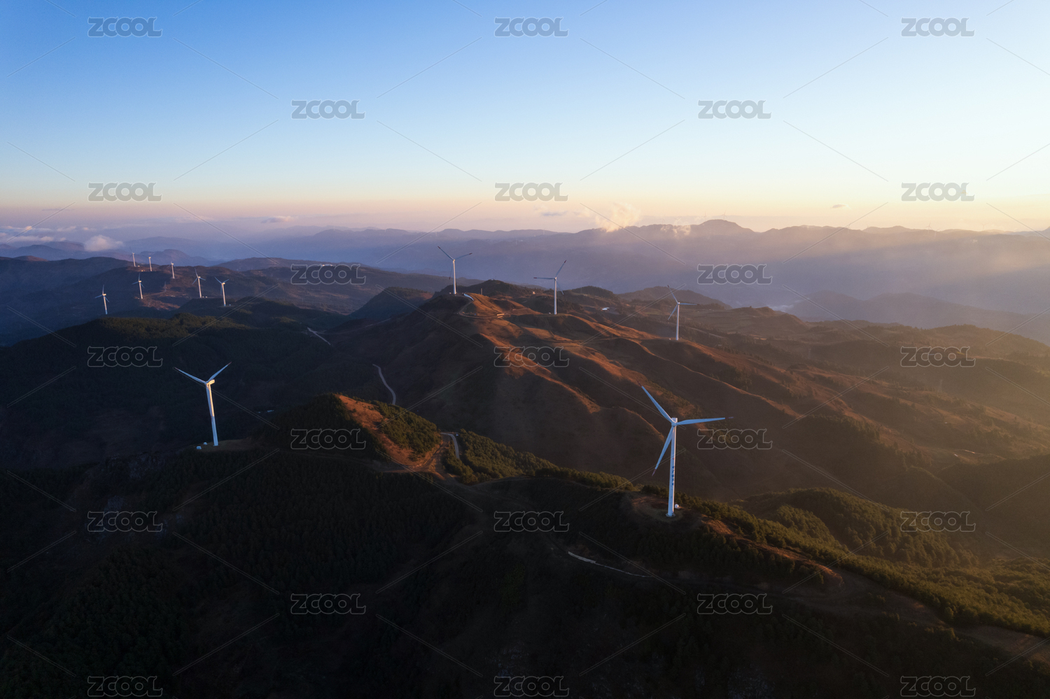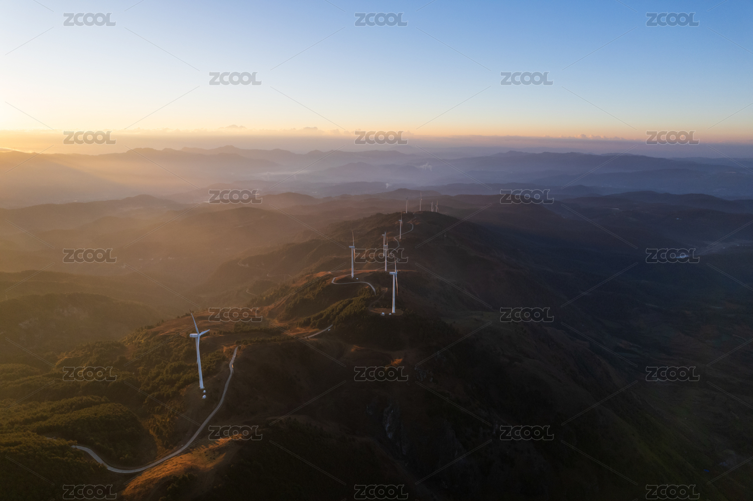 風(fēng)力發(fā)電機(jī),風(fēng)車,風(fēng)力發(fā)電站日出清晨航拍