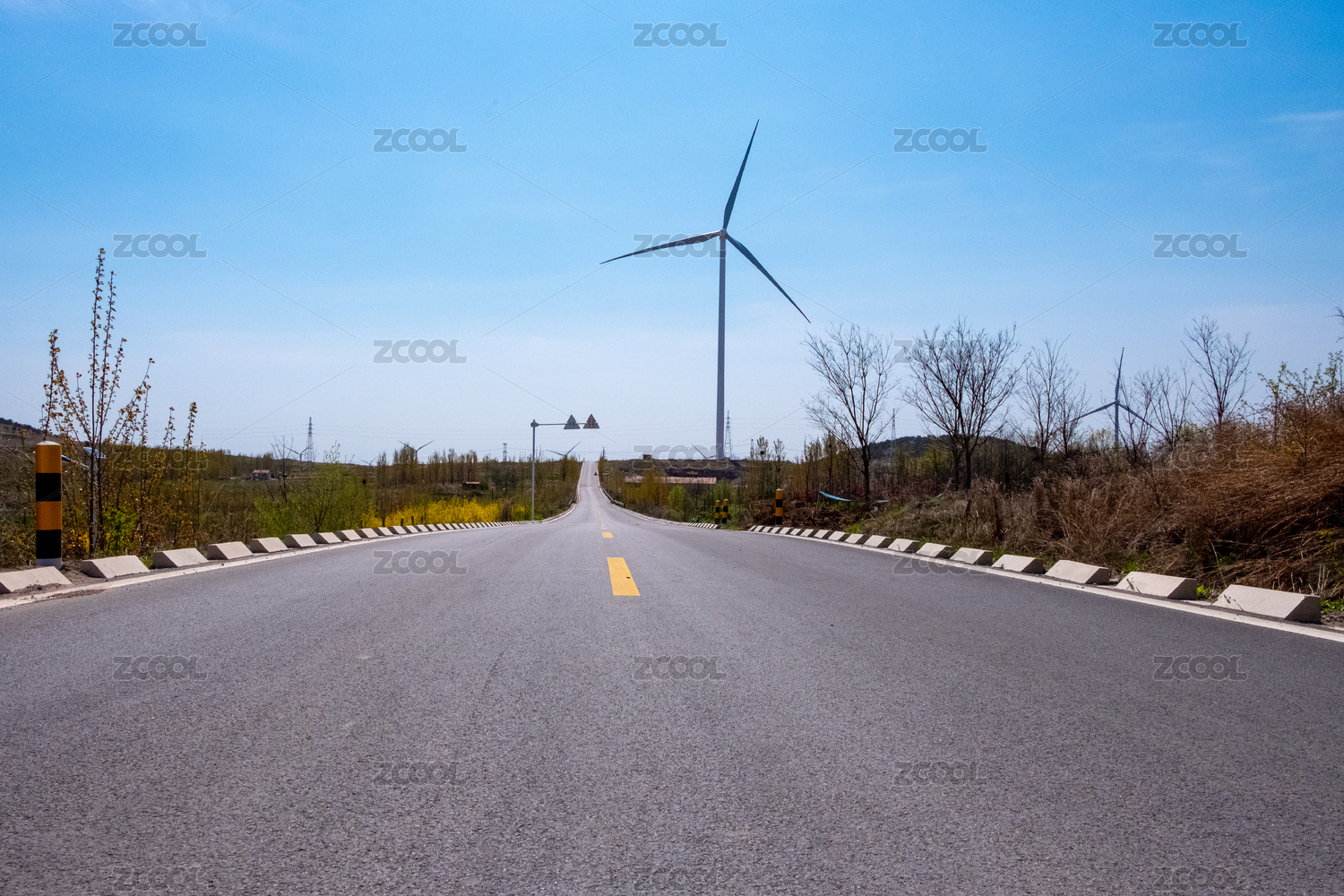 風(fēng)力發(fā)電站下的鄉(xiāng)間公路
