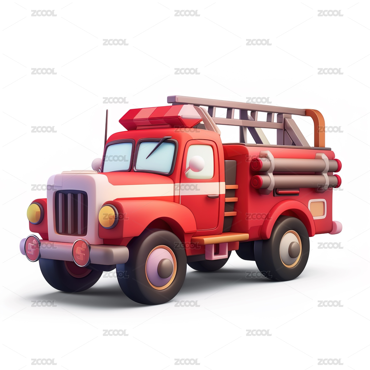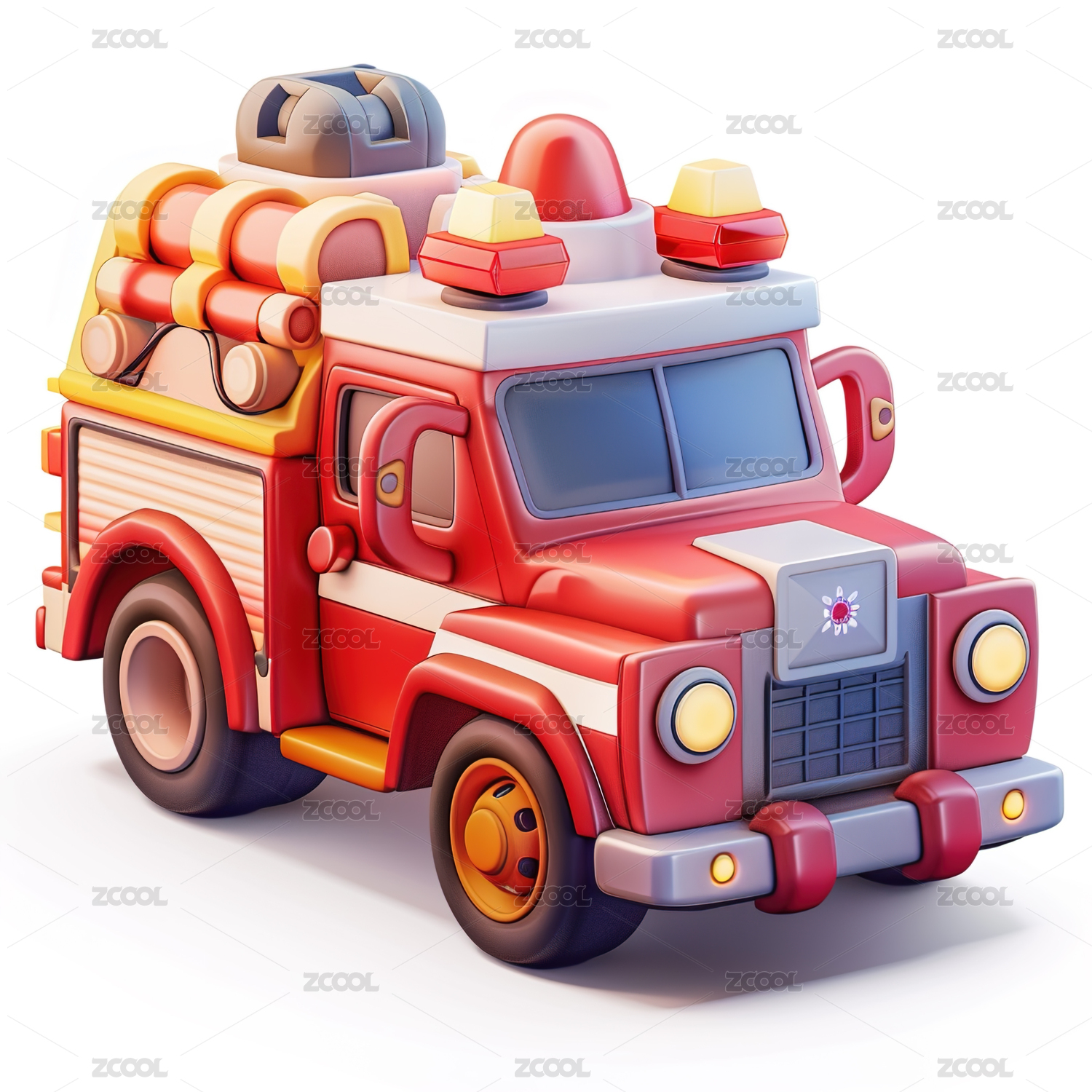 三維卡通救火消防車素材