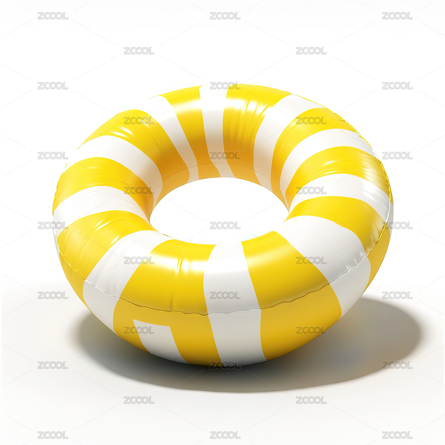 白色背景下黃色充氣環(huán)的高角度視圖