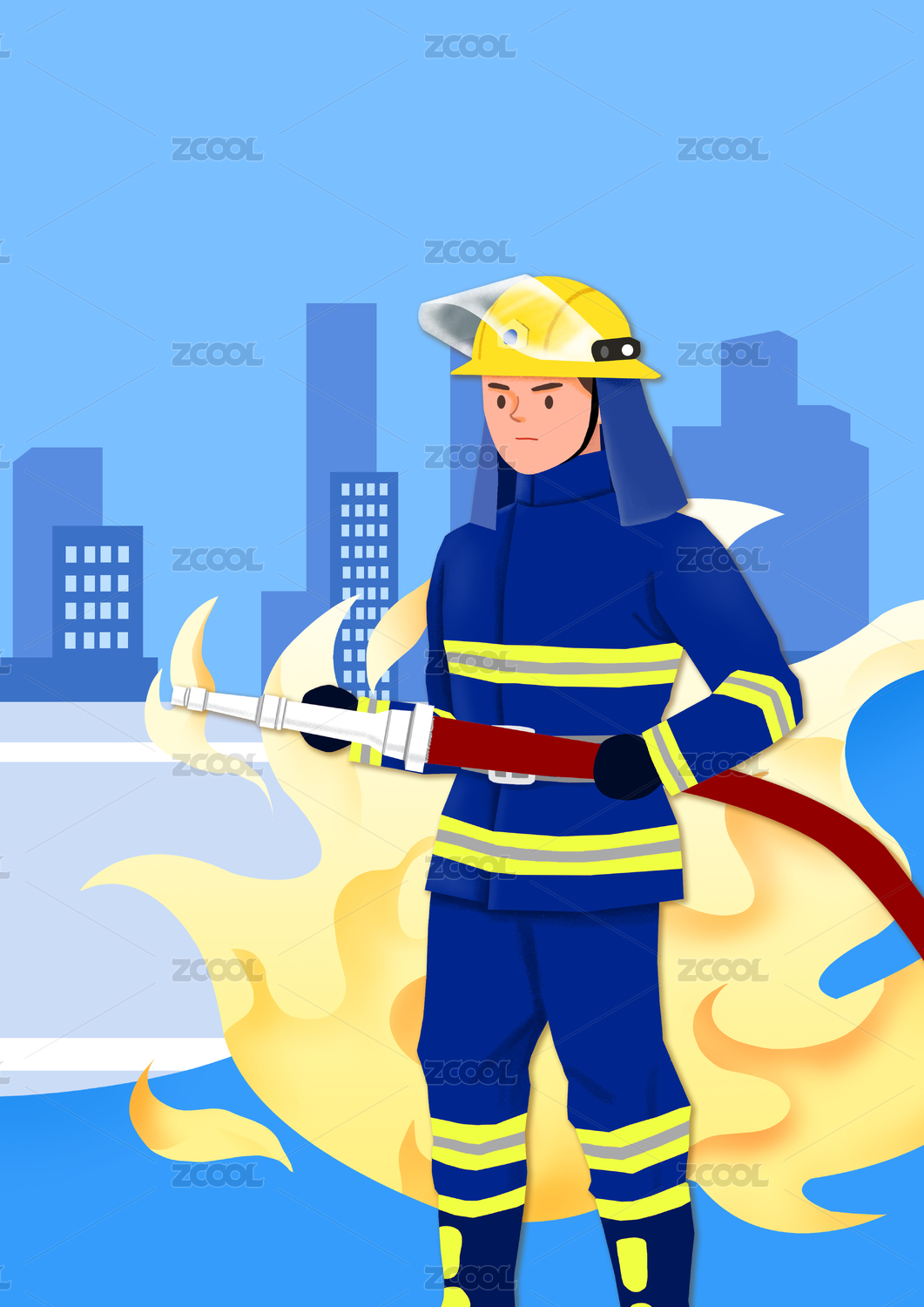消防員城市救火 扁平插畫