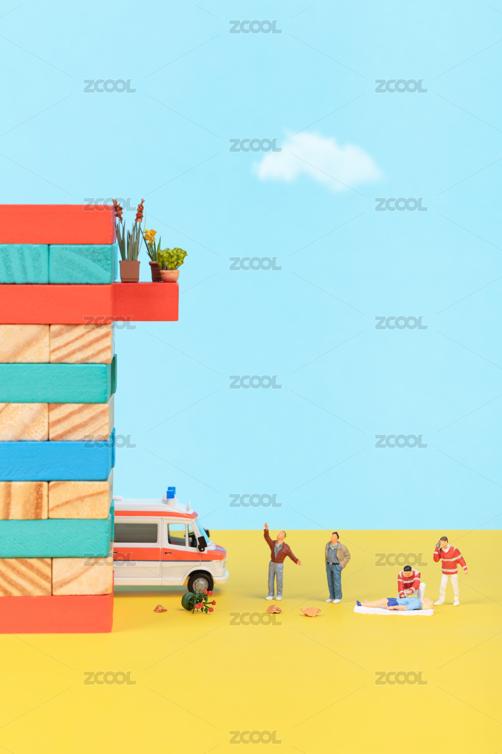 彩色積木紅十字急救救援傷者120心臟復(fù)蘇救護(hù)車與醫(yī)生