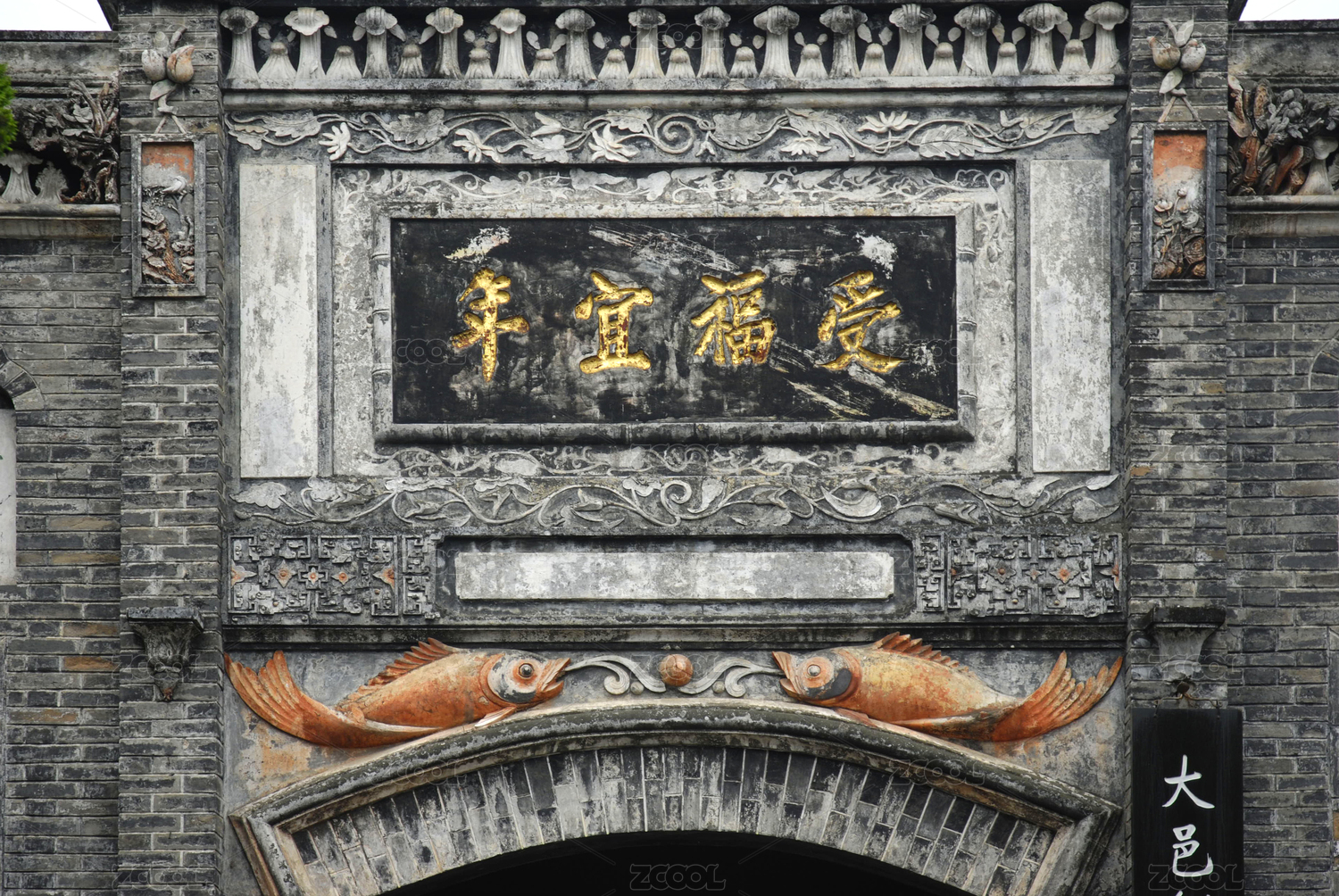 四川大邑縣劉氏莊園劉文彩公館青磚門樓裝飾 受福宜年題額